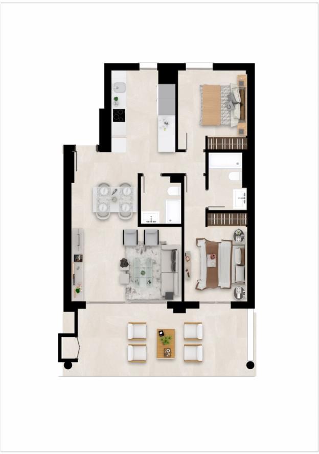 2 bed, 2 bath apartments from 410.000 euros 3 bed, 2 bath apartments from 495.000 euros Prices excl. 10% VAT / Ready Q3 - 2026 NEW APARTMENTS AND PENTHOUSES FOR SALE AT LA CALA GOLF RESORT, MIJAS, MÁLAGA, COSTA DEL SOL Sol Village is a new project with apartments that Taylor Wimpey España has designed to complete its real estate offer at the La Cala Golf Resort next to Harmony and Natura. The residence is being built at the top of the hill overlooking the Europa Golf Course, in a fabulous position that provides panoramic views of the golf course and some of them to the sea. All the apartments are East or South facing, meaning that they enjoy plenty of light all day long. Sol Village is located near to the Club House and the Hotel & Spa, where owners of Taylor Wimpey properties in the Resort can take advantage of the benefits and discounts provided by the Privilege Card. Sol Village completes the range of apartments and townhouses already in existence at La Cala Golf Resort. Ideal for families looking for a holiday home or investors looking for a property to rent out for the summer season with a good return. The project is split over two independent plots with 105 and 90 apartments, integrated into a common architectural concept. The first line golf apartments are near the hotel, the Clubhouse and the sport area and SPA. The first phase, Sol Village I, is already underway, with 48 apartments in five buildings with 3 storeys each. All the apartments have large terraces with glass balcony enclosures so that you can fully enjoy the fabulous views of the golf course and the apartments on the ground floor also have private gardens with views of the pool, resort gardens and the golf course that surrounds the development. The homes have a modern distribution with the "total living" concept where all the space is utilised, and with a large living room integrating the terrace via the large windows. The homes are fully equipped, with fitted wardrobes, air conditioning, fitted kitchen with appliances, LED lighting package and fully fitted bathrooms with unit, mirror and shower screen. There is also an extras package available to personalise your home. The residential is gated and has different parking options: outdoor and indoor. There is also an adult pool, infant splash pool and communal gardens overlooking the valley.