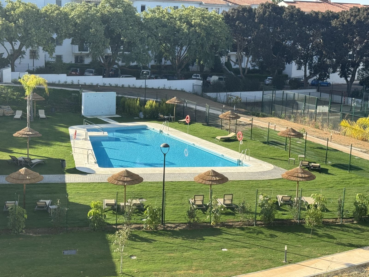 Just completed 3 bedroom new build penthouse. New residential complex with modern flats and penthouses close to golf in Estepona, located in a gated community, adjacent to La Resina Golf Club and a 5-minute drive to the beach. The penthouse has a modern design and offers top-quality materials and finishes. The open-plan living room with a fully equipped kitchen looks out onto a large terrace overlooking the garden and pool. The penthouse comes with a parking space and a storage room, included in the price. The communal areas are beautifully landscaped and offer expansive green areas and a large swimming pool. There is also a co-working space, a fully equipped gym and a children's playground.