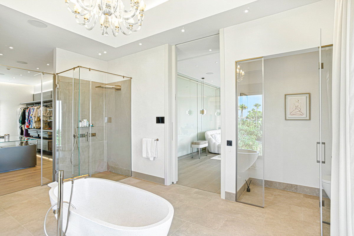 An architecturally unique, south-facing property located in the exclusive gated community of Sierra Blanca on Marbella’s prestigious Golden Mile. This brand-new mansion offers exceptional design, panoramic sea and mountain views, 24-hour security, and is just minutes from world-class beaches, golf courses, international schools, fine dining, and the glamour of Puerto Banús. Designed to impress, the villa blends bold contemporary lines with timeless European craftsmanship. Luxurious finishes include premium natural stone flooring, imported French limestone columns, custom Rimadesio wardrobes, wood doors, and German-engineered fittings. Spanning four levels and connected by a high-end elevator, the home features seven bedrooms, including a spectacular master suite with a private terrace and his-and-hers walk-in closets. Expansive living and dining areas, a state-of-the-art kitchen, and two wine cellars make it ideal for both comfort and entertaining. Standout features include a wellness and leisure area with a private spa, including an indoor heated pool, gym, sauna, and jacuzzi. The beautifully landscaped plot also hosts one of the largest private heated pools in Spain, surrounded by serene lounging areas. The rooftop offers a magnificent entertainment area, complete with an open-air cinema, outdoor kitchen, and sweeping panoramic views. Additional highlights include a full smart home automation system, water-based underfloor heating, security glass, motorized blinds throughout, two independent guest apartments, and a spacious private garage. Set against a stunning mountain backdrop this home exudes a palatial presence, ideal for buyers seeking prestige, grandeur, and architectural drama.