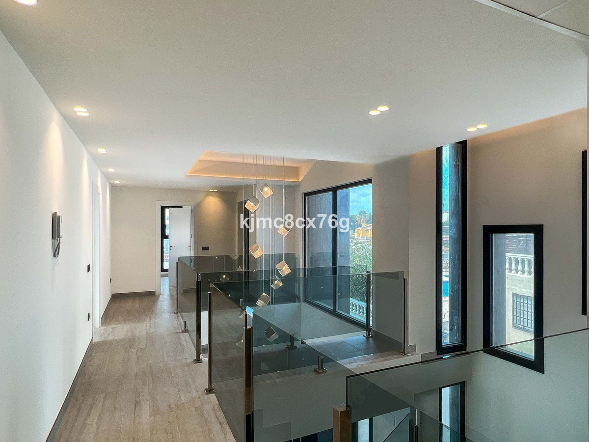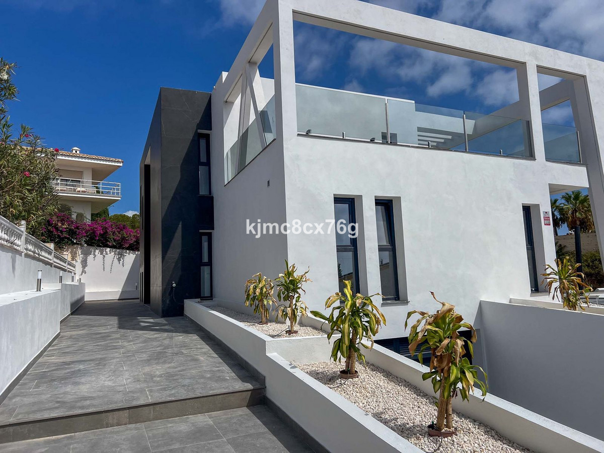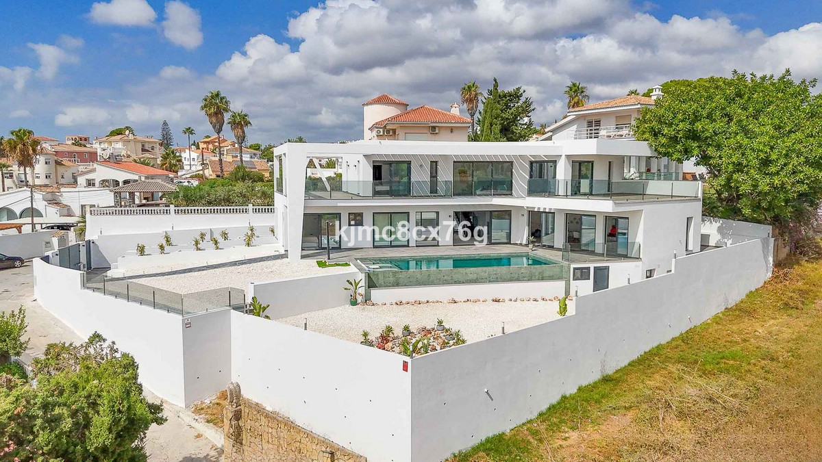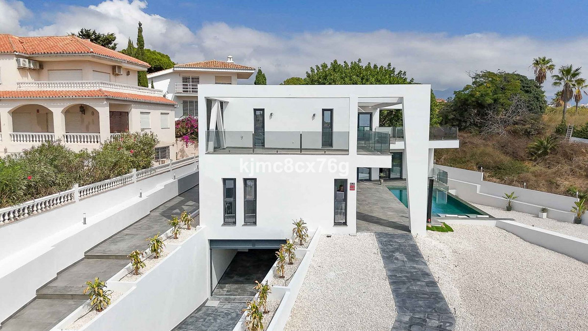 Wonderful, ultra-modern, newly built villa in the El Faro residential area, Mijas Costa, just 200 metres from the beach. Unparalleled luxury in the area. Spacious, bright, with uninterrupted sea views and plenty of privacy to delight even the most demanding client. The property consists of three levels connected by stairs and a lift, distributed as follows: main floor with large living-dining room opening onto a large terrace, gardens and swimming pool, as well as a barbecue area. Fully equipped kitchen with separate utility room, a guest toilet and two en-suite bedrooms, perfect for guests. First floor with two large en-suite bedrooms, study and another full bathroom. In addition, a terrace of over 100 m² with spectacular sea and mountain views. Finally, the large basement of over 250 m² houses a spacious car park for several vehicles, a machinery room and a huge area that could be used to create a guest apartment, cinema, wine cellar, games room or whatever the new owner desires.