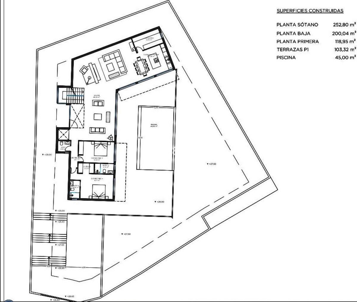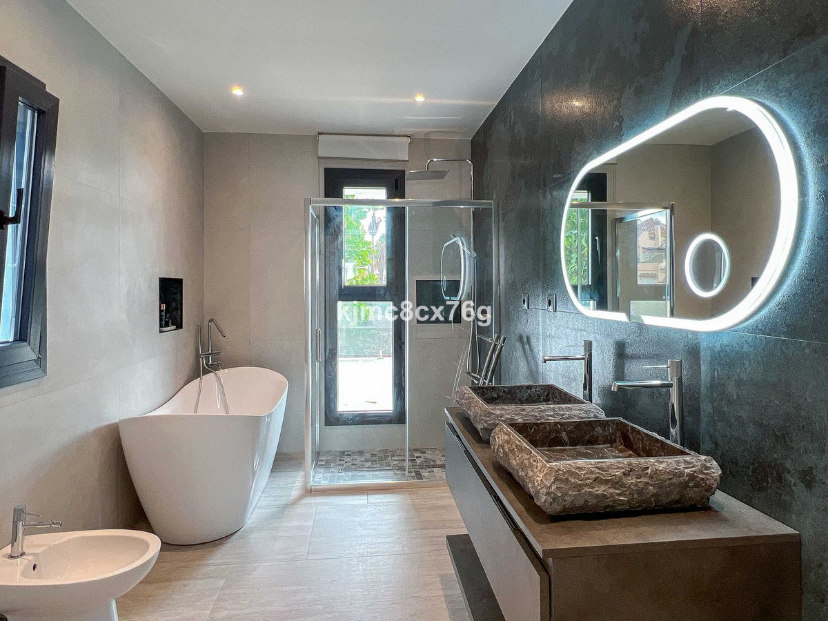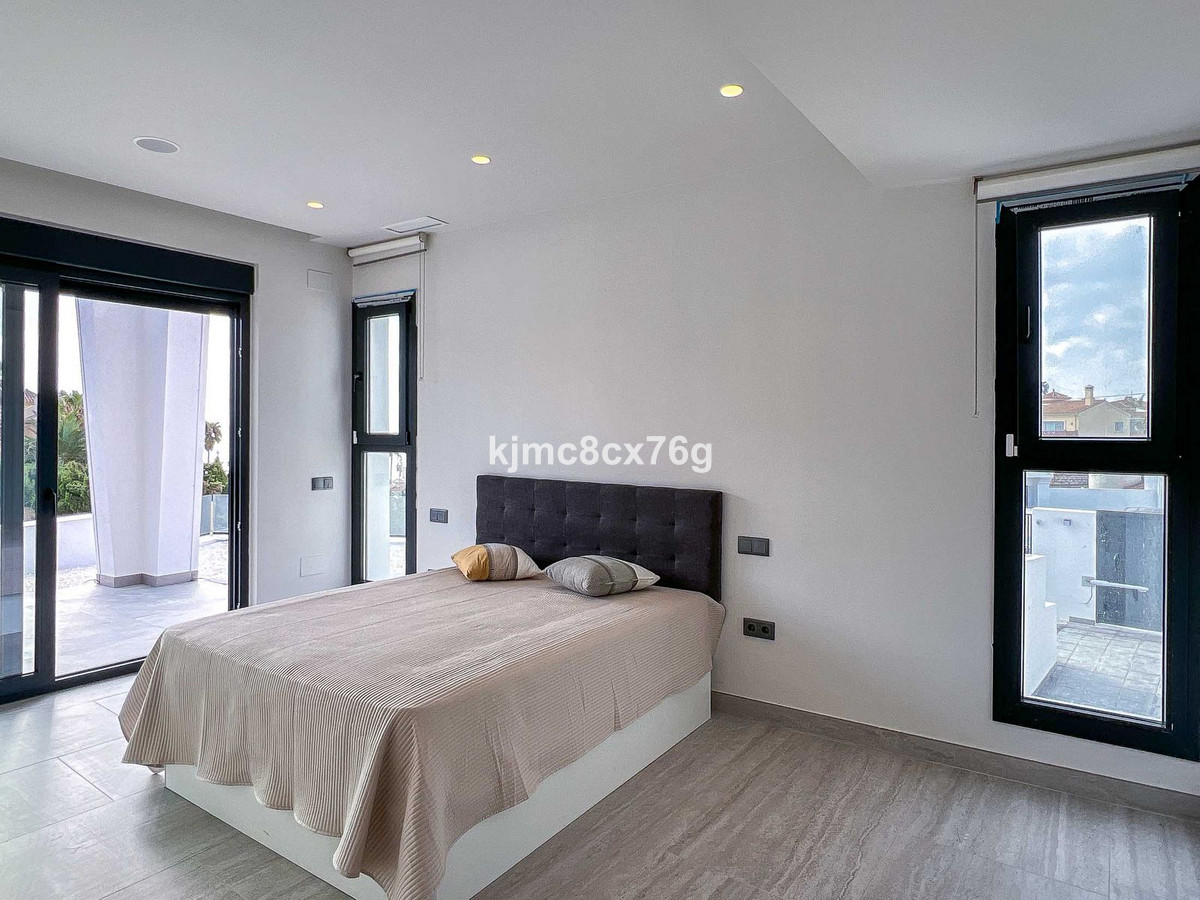 Wonderful, ultra-modern, newly built villa in the El Faro residential area, Mijas Costa, just 200 metres from the beach. Unparalleled luxury in the area. Spacious, bright, with uninterrupted sea views and plenty of privacy to delight even the most demanding client. The property consists of three levels connected by stairs and a lift, distributed as follows: main floor with large living-dining room opening onto a large terrace, gardens and swimming pool, as well as a barbecue area. Fully equipped kitchen with separate utility room, a guest toilet and two en-suite bedrooms, perfect for guests. First floor with two large en-suite bedrooms, study and another full bathroom. In addition, a terrace of over 100 m² with spectacular sea and mountain views. Finally, the large basement of over 250 m² houses a spacious car park for several vehicles, a machinery room and a huge area that could be used to create a guest apartment, cinema, wine cellar, games room or whatever the new owner desires.
