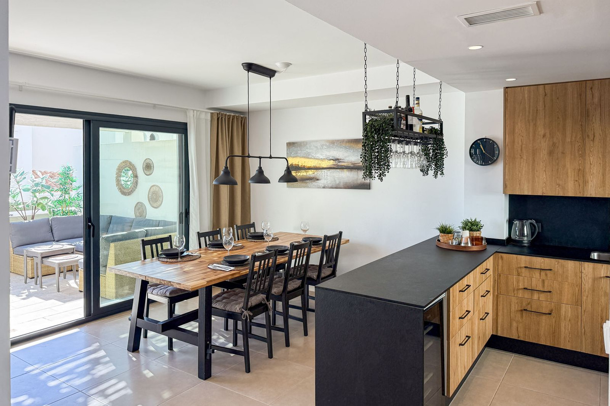 Modern 3-Bedroom Townhouse with Rooftop Terrace, El Paraíso This elegant townhouse, built in 2023, is located in the sought-after area of El Paraíso, just a few minutes from the beach, schools, and golf courses. It is situated next to the exclusive El Campanario Resort, which offers a 9-hole golf course, restaurant, bar, gym, and both outdoor and heated indoor pools. In addition, a variety of restaurants and everyday amenities are just 1 km away. Puerto Banús is only 10 minutes by car, and Málaga Airport can be reached within 50 minutes. On the ground floor there is a modern kitchen, a bright living-dining room, one bedroom and a bathroom. From this level you can also access two large terraces on both sides of the house, perfect for enjoying the sun throughout the day. The first floor offers two spacious bedrooms and two bathrooms. The master suite has its own private terrace, creating a comfortable and private retreat. The rooftop terrace is a highlight, a cozy and private space where you can enjoy the sun all day long with views to the famous La Concha mountain. The basement adds functionality with a hobby room, laundry room and storage space, plus direct access to the garage. The townhouse is part of a gated community with a relaxing pool area, ideal for enjoying the Costa del Sol lifestyle in a safe and tranquil environment.