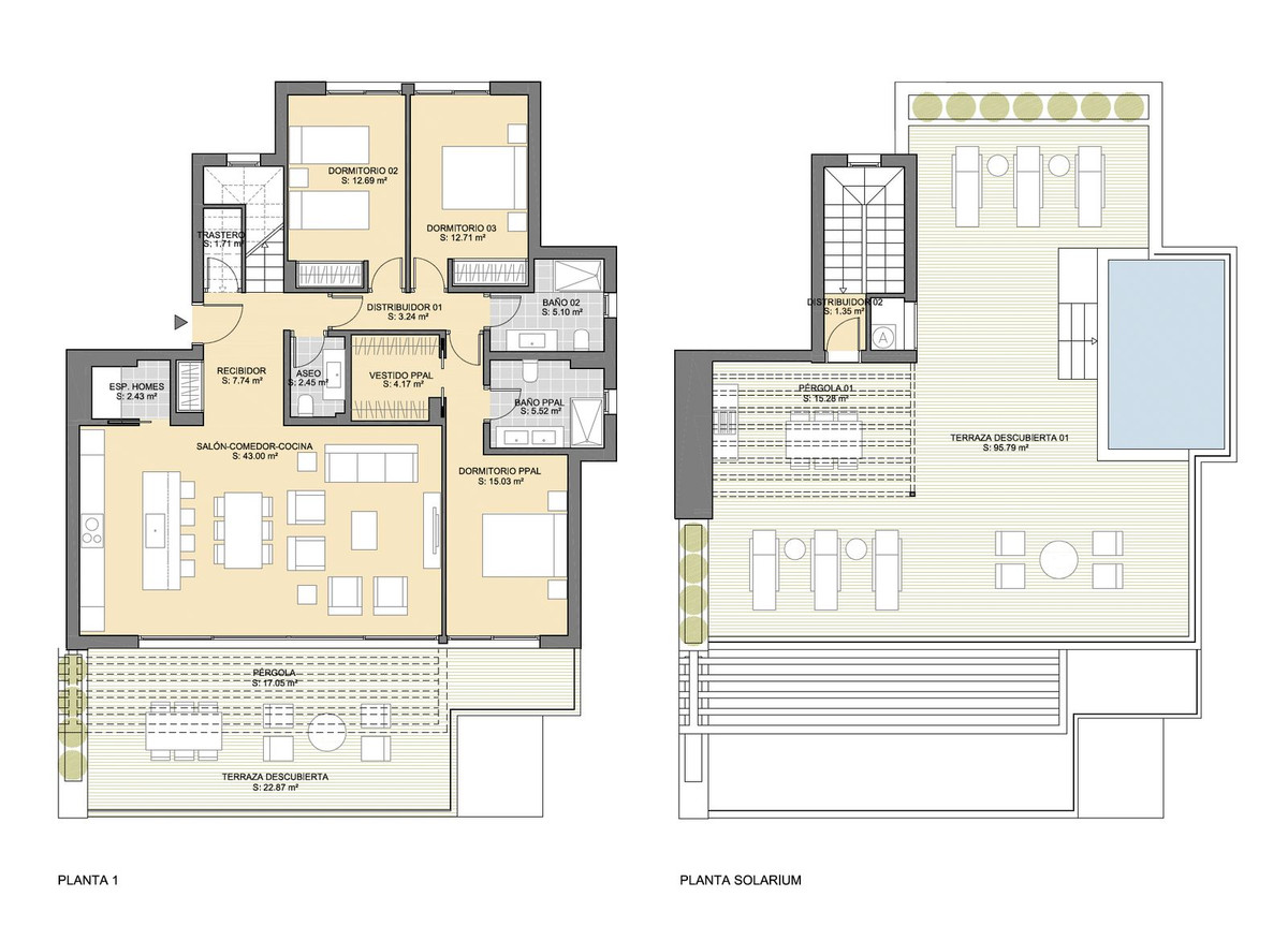 Highlights Private solarium with swimming pool and breathtaking sea views Walking/cycling distance to the beach, marina & Cabopino Golf South-facing penthouse with both mountain and sea views Resort-style amenities: outdoor pool, gym, and spa with indoor pool For investors: tourist rentals are allowed in the community About the Property Welcome to this exceptional penthouse – an exclusive, recently built residence in a prime location near the Cabopino marina. This luxurious rooftop apartment combines contemporary architecture, phenomenal views, and complete privacy. The south-facing orientation ensures maximum natural light and sunshine throughout the day, while nearly every room offers panoramic views of the Mediterranean Sea and the surrounding mountains. Underfloor heating throughout. This penthouse offers a rare combination of style, space, and location – perfect for those who enjoy the good life on the Costa del Sol. Beautifully maintained community featuring luxurious shared facilities, including: Spacious outdoor swimming pool with sun terrace Modern gym and spa with indoor pool Secure gated access and underground parking The penthouse includes two private parking spaces and a storage room, both included in the price. Interiors & Finishes The penthouse features 3 bedrooms and 2.5 bathrooms, an open-plan living area with large floor-to-ceiling windows, and a fully equipped modern kitchen. High-quality finishes and meticulous attention to detail ensure both aesthetic appeal and comfort. There is also the option to purchase the property fully furnished and equipped. Above the living area, an exclusive rooftop solarium with a private pool provides the perfect space to relax and unwind while enjoying uninterrupted sea and mountain views from sunrise to sunset. Location The complex is within walking or cycling distance of both the beach and the charming Cabopino Marina, known for its cozy restaurants, beach clubs, and protected dune landscape. Cabopino Golf Club is only minutes away, while Marbella town centre is just a 10-minute drive. The Malaga Airport can be reached in just 30 minutes, offering excellent connectivity. In short, the ideal location for those seeking tranquility, nature, and convenience. Dimensions & Delivery Penthouse with 3 bedrooms and 2.5 bathrooms Large terrace + spacious rooftop solarium with private pool 2 underground parking spaces + storage room Year built: 2023 Asking price: €1,495,000 (Price includes parking spaces and storage room – purchase costs excluded) Ready to experience this penthouse for yourself? Contact us today for more information or to schedule a private viewing.