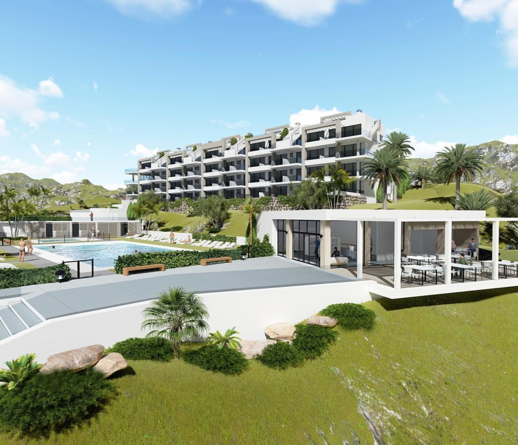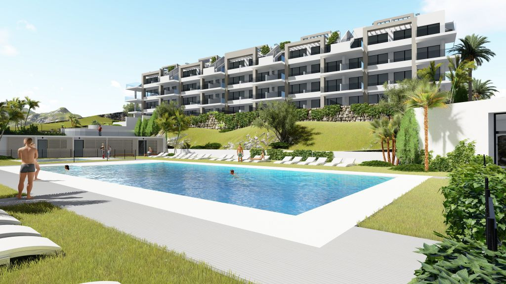 Setting: Close To Schools Pool: Communal Climate Control: Hot A/C Views: Sea, Mountain, Pool Features: Ensuite Bathroom Kitchen: Fully Fitted Garden: Communal Security: 24 Hour Security Parking: Garage Category: New Development |
