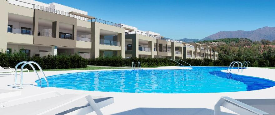 Setting: Close To Shops Pool: Communal Climate Control: Hot A/C Views: Sea, Beach, Panoramic, Pool Features: Ensuite Bathroom Kitchen: Fully Fitted Garden: Communal Parking: Communal Category: New Development |