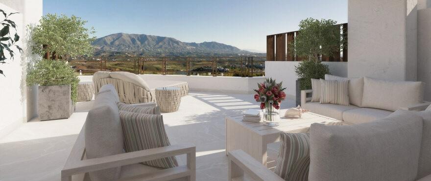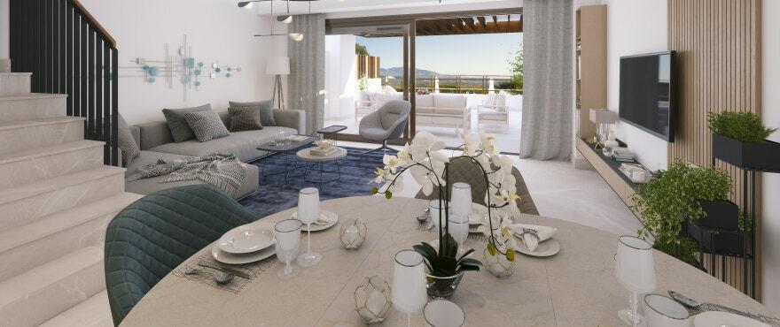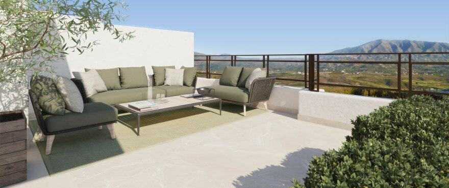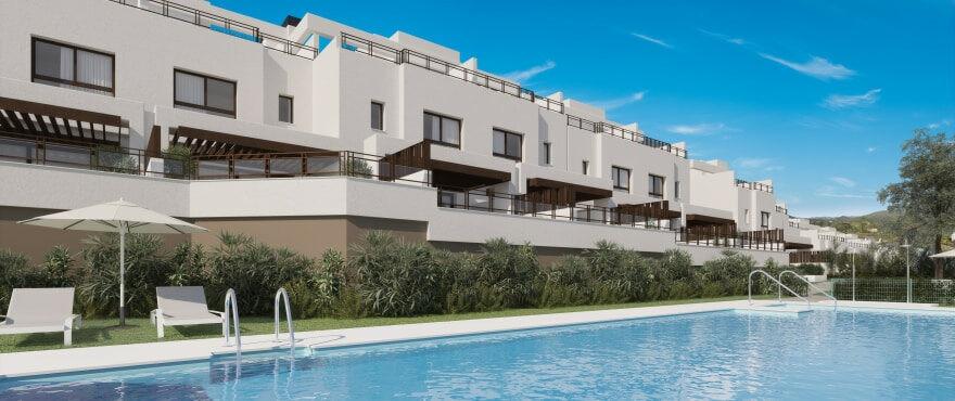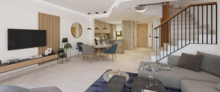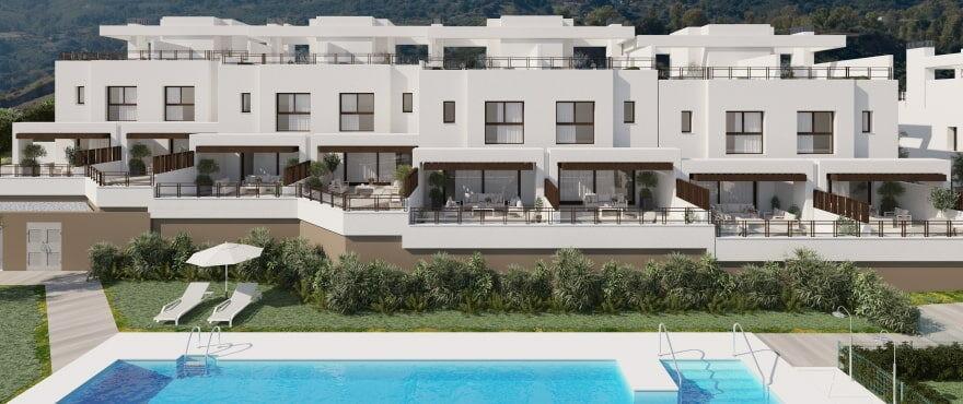 This is a new project in La Cala Resort formed by 21 spacious townhouses with panoramic views of the resort, the sea and Mijas valley. The homes are distributed over 3 levels in a private gated community with communal pool and gardens. Definitely the project for you if you are looking for a comfortable, functional home with a private basement, a light and airy main floor with a fully fitted and equipped kitchen, 3 spacious bedrooms, a large solarium measuring and a garden.The complex is located in a peaceful area between the Sierra de Mijas Natural Park in Mijas and the Mediterranean Sea, just 10 minutes from the fabulous beaches of the Costa del Sol, only 20 minutes from Marbella and 30 minutes from Málaga airport.