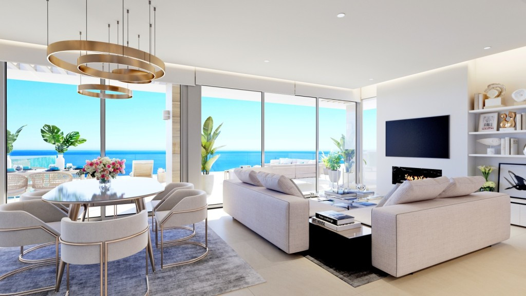 1 bed, 1 bath apartments from 420.000 euros 2 bed, 2 bath apartments from 620.000 euros 3 bed, 2 bath apartments from 900.000 euros 3 bed, 2 bath penthouses from 1.300.000 euros Prices excl. 10% VAT PHASE 1, 2 & 3 now sold out. Phase 4 last units off plan now selling. These cutting edge apartments span over a large site with plans to add in a wide array of amenities including sports and leisure, in addition to being only a short walk to the well-established town of La Cala de Mijas and the golden dunes its beach with many chiringuitos and ample space for families to relax and enjoy the Spanish tranquility. The town of La Cala de Mijas can provide all the necessities with ample doctors surgeries, dentists, banks and lawyers as well as supermarkets and a wide variety of boutique shops, restaurants and bars- Offering a variety of 1-4 bedroom apartments and penthouses, The Palms also boasts an expansive resort area with beach entry pools, a lap pool, indoor and outdoor gyms a kids play area and ample natural greenery in which families can spend their days exploring. The apartments benefit from high end fittings and fixtures, including open plan kitchens A-rated energy appliances as standard and have incredible views of both the mountains and the sea, from terraces due to their hilltop location. fMalaga Airport, Fuengirola, Torremolinos and Malaga city are in one direction with Marbella and Estepona only a short drive the other. Mijas has easy access to the very best of The Costa del Sol and beyond.