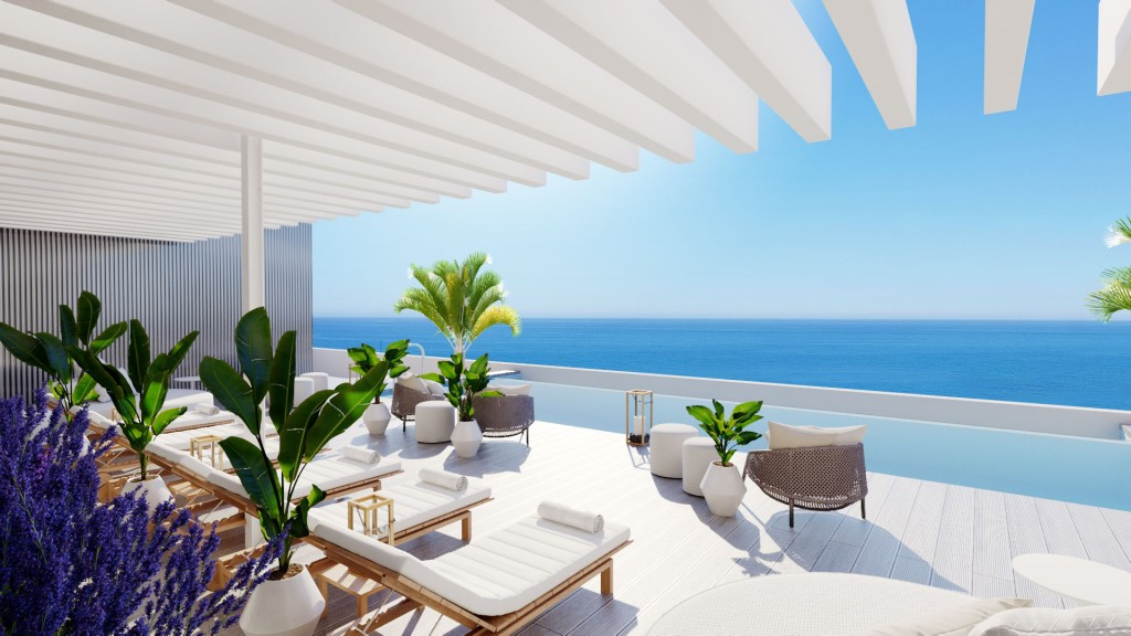 Setting: Beachside, Close To Golf, Close To Shops, Close To Sea, Close To Town, Close To Schools Pool: Communal Climate Control: Hot A/C Views: Sea, Beach, Panoramic, Pool Kitchen: Fully Fitted Garden: Communal Security: 24 Hour Security Category: New Development |