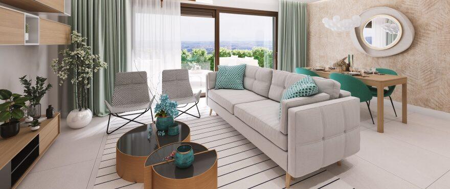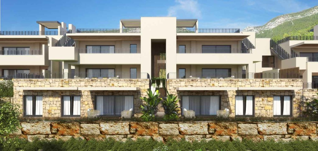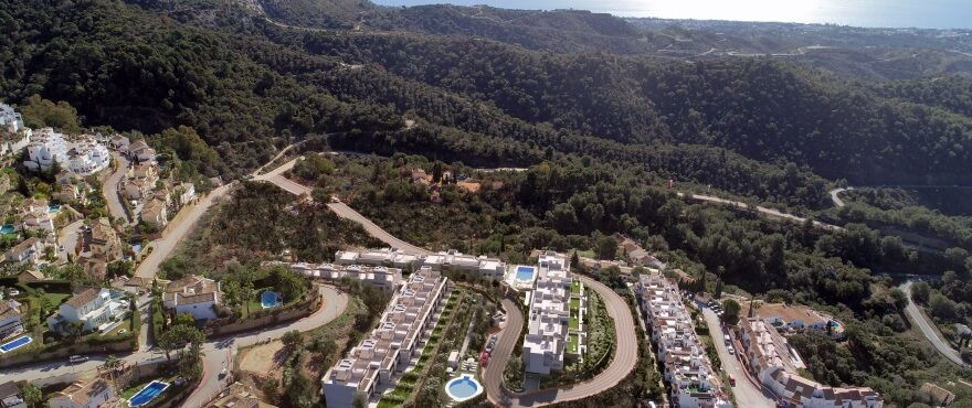 2 bed, 2 bath apartments from 350,000 euros 3 bed, 2 bath apartments from 430,000 euros 3 bed, 2 bath penthouses from 515.000 euros Prices exclude 10% VAT and include garage space This is the first project on sale, comprising 32 exclusive apartments with the best panoramic views at the highest part of the development. All the homes have unrestricted views with a south-easterly aspect towards the Marbella Bay and Gibraltar. The project includes 4 blocks of 3 floors with homes in contemporary "open plan" style but with a rustic appearance that blends into the natural surroundings. Apartments with 2 and 3 bedrooms and penthouses with a solarium, with large terraces, communal pool and gardens with autochthonous plants.