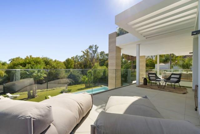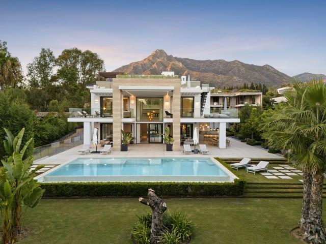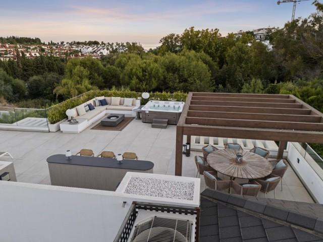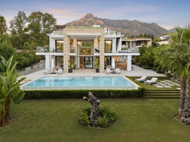 Nestled in the prestigious Altos de Puente Romano on Marbella’s Golden Mile, it´s the epitome of modern Mediterranean luxury. This striking six-bedroom, six-bathroom residence blends sleek contemporary architecture with warm natural tones, creating an inviting sanctuary just minutes from the beach and Marbella’s finest dining and leisure. Floor-to-ceiling windows flood the interiors with light, while seamless transitions between indoor and outdoor spaces capture the essence of Costa del Sol living. The villa’s expansive living areas are designed for both style and comfort, from the elegant open-plan lounge and designer kitchen to the formal dining room and chic entertainment lounge. Every bedroom is a private retreat, complete with en-suite bathrooms, while the master suite boasts a spa-inspired bathroom with a freestanding tub and breathtaking views of La Concha mountain. Outdoors, multiple terraces, a rooftop lounge with a Jacuzzi, and a spectacular infinity pool provide the perfect backdrop for relaxation and entertaining. Beyond its beauty, it offers a lifestyle of exclusivity and convenience. A private garage, state-of-the-art amenities, and lush landscaped gardens ensure comfort at every turn. At the same time, its secure location in one of Marbella’s most sought-after gated communities guarantees peace of mind. It is also located a short distance from the Puente Romano Hotel and Marbella Club Hotel, 2 of the most prestigious resorts Marbella has to offer, as well as their 5-star restaurants and amenities. It delivers the ultimate Marbella experience — where sophistication meets the sun-soaked elegance of the Golden Mile. Villa, Close to Golf, Fitted Kitchen, Underground parking, Pool: Private, Garden: Private, Facing: South Views: Garden, Mountains, Pool, Sea, Street Features: 24 hrs Security System, 5-10 minutes to Golf Course, Air Conditioning Hot/Cold, Alarm System, Basement, Close to schools, Contemporary style, Conveniently Situated for Golf, Conveniently Situated Schools, Double Glazing, Electric Entry Phone, En suite bathroom, Excellent Condition, Fitted Wardrobes, Furnished, Games Room, Garden, Garden and Pool View, Gated Complex, Guest Wardrobe, Heated Outdoor Pool, Heated Pool, Jacuzzi, Lift, Luminous, Modern Style, Mountain View, Near Transport, Newly Built, Private pool, Private Terrace, Sea Views, Solarium, Solarium and Jacuzzi, Sought After Area, Spacious Accommodation, Storage room, Stylish Accommodation, Underfloor Heating, Underground parking, Utility Room, Wifi available