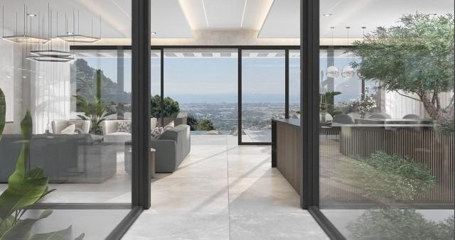 Villa Omega is expected to finish End of 2025. Madroñal Gold is an exclusive new development located in the heart of Madroñal, Benahavís. This exceptional project comprises two identical contemporary villas: Villa Alfa and Villa Omega, both offering breathtaking panoramic sea views and set within a prestigious gated community with 24-hour security. Villa Omega spans three levels and is designed to provide the ultimate in luxury living. The lower floor features a private spa with the latest micro-cementation technology, including a heated indoor pool, Finnish sauna, and Turkish bath. Additionally, residents will enjoy a fully equipped gym, a games room with a pool table, a bar, and a spacious wine cellar. The architectural concept revolves around two elegant glass cubes, which create an internal courtyard where a beautiful olive tree takes center stage an ideal setting for relaxing or enjoying shisha. Floor-to-ceiling windows flood the interiors with natural light while incorporating sun protection for a comfortable atmosphere year-round. The outdoor area offers an expansive terrace with panoramic sea views and an infinity pool made from Indonesian stone, renowned for its water-purifying properties. Sunbeds, a large dining table, and a stylish chill-out zone complete this perfect Mediterranean retreat. The master suite is thoughtfully designed with two en-suite bathrooms and two separate dressing areas, maximizing both comfort and privacy. A staff room and a dedicated laundry area further enhance functionality. Technology and entertainment are state-of-the-art, with the latest OLED TV featuring Acoustic Surface Audio and a BOSE sound system integrated with artificial intelligence. Each villa also includes a private garage with space for four vehicles. In the near future, a new road will connect Madroñal directly with Real de la Quinta and Nueva Andalucía, improving access and convenience. Madroñal Gold offers an extraordinary living experience where striking modern design, top-tier amenities, and stunning sea views come together in perfect harmony. Villa Omega is delivered fully furnished and ready to move in.