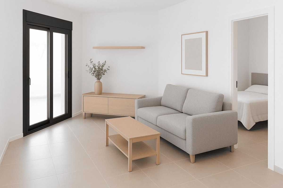 Apartment with Terrace and Partial Sea Views – Costa Blanca Modern 2-bedroom, 2-bathroom apartment located in a quiet residential area, just minutes from the sea and with excellent access to services and main roads. It features a private terrace with partial sea views, perfect for enjoying the Mediterranean climate all year round. Main features: Fitted kitchen with ceramic hob, sink, and extractor hood Bathrooms with furniture, mirror, and shower screens Built-in wardrobes with interior lining Double-glazed windows and motorized shutters Automatic garage door with remote control Elevator with direct access to the basement Landscaped communal areas with automatic irrigation and paved walkways Building entrances decorated with high-quality materials 2 communal swimming pools and 2 paddle tennis courts Ideal as a permanent home, holiday getaway, or investment opportunity on the Costa Blanca.