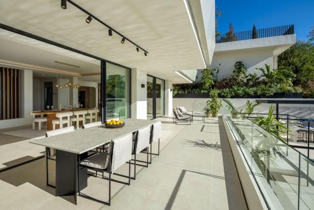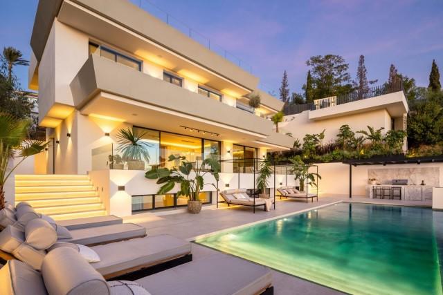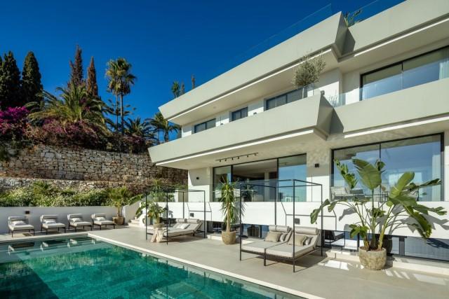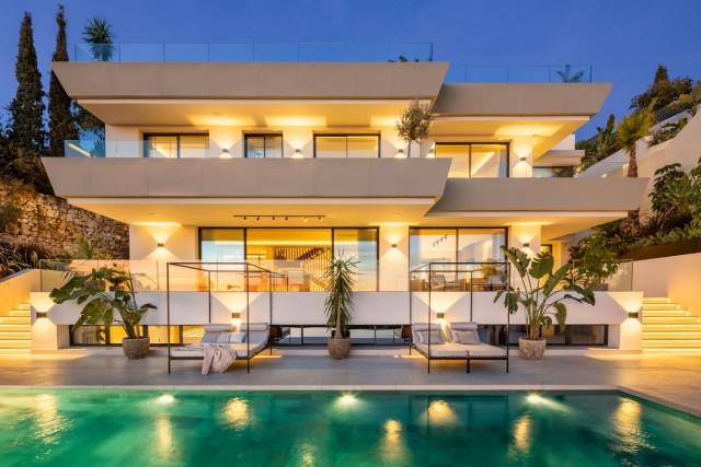 This spectacular newly built villa, located in the prestigious Elviria area of Marbella East, stands out for its contemporary architecture, designed by Francisco Martínez Galván and developed by Homerun Developments. With 454 m² of interior space and 621 m² of terraces, the property offers a modern living concept that integrates luxury, spaciousness, and functionality. Distributed over three floors, it features five en-suite bedrooms, four additional bathrooms, and two guest toilets, all finished with high-quality materials and premium equipment from brands such as Gaggenau and Siemens. Its south-facing orientation guarantees natural light and open sea views, while its location within a gated community ensures privacy and security through advanced surveillance systems. The interior combines oak floors, large porcelain tiles, and a minimalist design that creates an elegant and welcoming atmosphere. The villa includes dedicated entertainment spaces, such as a TV room, and is delivered fully furnished in a contemporary style, with the option to purchase additional furniture at an extra cost. Elviria, known for its tranquil atmosphere, excellent schools, quality beaches, and wide range of leisure and sports options, makes this property an ideal location for those seeking a refined, secure lifestyle connected to nature and the amenities of Marbella East. Furniture package: €250,000 on top of the selling price. Villa, Close to Golf, Fitted Kitchen, Parking: Garage, Pool: Private, Garden: Private, Facing: South Views: Breathtaking, Countryside, Courtyard, Mountains, Open views, Panoramic, Sea Features: 5-10 minutes to Golf Course, Air Conditioning Hot/Cold, Alarm System, Bar, Built barbecue, Close to schools, Contemporary style, Conveniently Situated for Golf, Conveniently Situated Schools, Conveniently Situated Tennis, Fitted Kitchen, Furnished, Games Room, Garage, Garden and Pool View, Ideal Family Home, Jacuzzi, Laundry room, Luxury Fittings, Marble Bathroom, Modern Style, Mountain View, Newly Built, Porcelain floor, Prestige Fitted Kitchen, Sea Views, Solarium and Jacuzzi, Stylish Accommodation, TV Room, Video Cameras, Wine Cellar