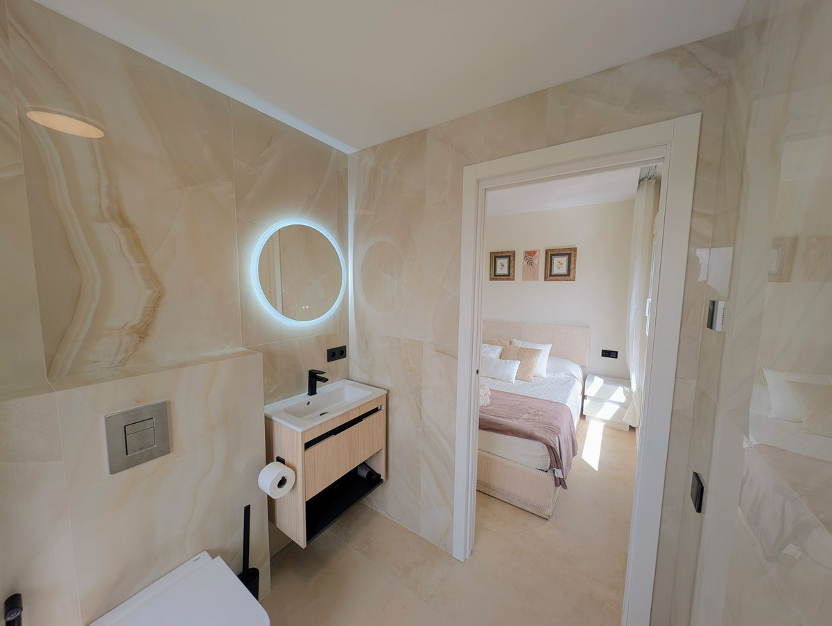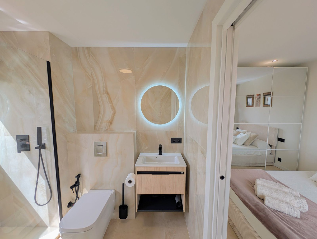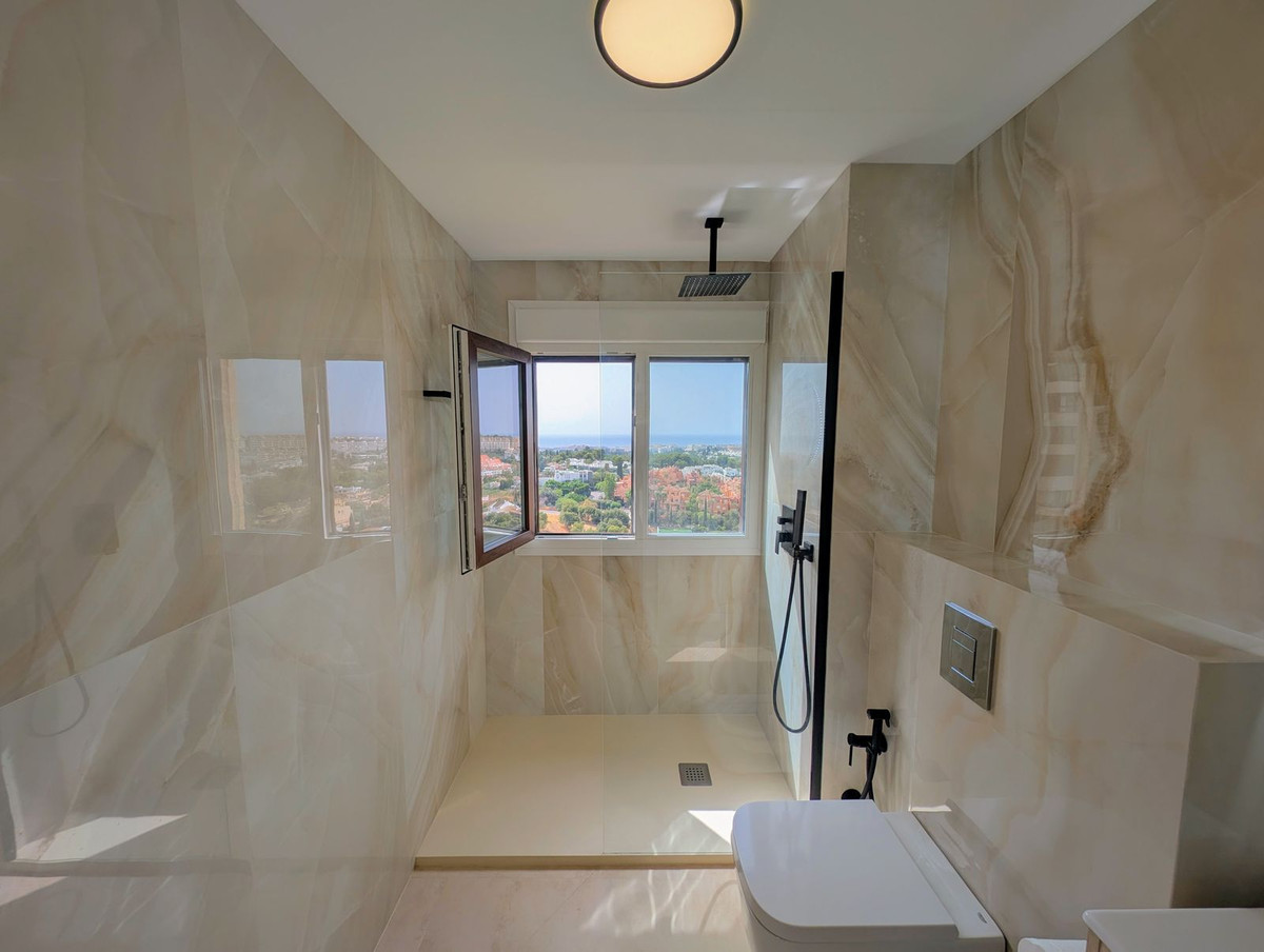 OPPORTUNITY - INVESTMENT - . JUST 100% RERURBISHED, UNDERFL. HEATING - AC - TRIPLE GLASSING - OPEN PLAN LIVING ! EASY ACCESS EASY MAINTENANCE. This fully renovated PENTHOUSE 1-bedroom, 1-bathroom apartment offers the perfect blend of modern living and comfort, nestled in the heart of Nueva Andalucía, Aloha. Boasting ,spectacular sea views of both La Concha mountain and Gibraltar, it provides a peaceful yet connected retreat close to all amenities. NOTE: ELECTRICITY AND WATER IN THE COMMUNITY FEES INCLUDED. The apartment features an open-plan layout designed to maximize space and natural light, complemented by high-quality finishes and climate control with underfloor heating throughout. Triple-glazed windows ensure excellent insulation and soundproofing (indicated as double glazing in features due to platform limitations). The fully equipped kitchen includes LED ambient lighting and top-tier German-made Bosch appliances, including a dishwasher and washing machine, all selected for performance and reliability. Additional highlights include: Reception with concierge services Communal swimming pool Gated community with communal outdoor parking Whether you're seeking a stylish home or a high-yield investment, this apartment combines panoramic views, quality construction, and a prime location—delivering on both convenience and charm.