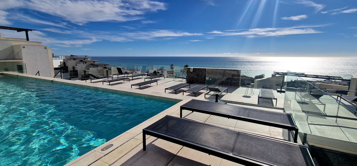 Torrox Costa – Townhouse with Panoramic Sea Views Completed in 2024, this modern townhouse in the prestigious El Mirador development offers 156 m² of living space and is a rare opportunity to step straight into the Mediterranean lifestyle. Just minutes from the beach, it combines uninterrupted sea views with a perfect balance of comfort, leisure, and investment potential. Drive directly into your own private parking space and enjoy the convenience of a home designed for ease and enjoyment. About El Mirador El Mirador in Torrox Costa is an exclusive gated community of 37 elegant townhouses, built to Scandinavian standards and infused with Andalusian charm. Set in Europe’s best climate zone, it is designed for year-round enjoyment of the sun. Residents benefit from outstanding amenities, including a heated infinity pool with panoramic views, a spa and wellness area, café, fitness facilities, and beautifully landscaped communal spaces. Sustainability is central to the development, with solar energy and eco-friendly systems ensuring modern comfort with minimal environmental impact. Property Features • 156 m² in total • Private parking directly on the property • Bright living room with open-plan kitchen and guest toilet, plus terrace on the first floor with space to lounge and dine outdoors • Lower level with three bedrooms (one en-suite), an additional bathroom, and two storage rooms • Terrace with sun loungers and private spa • Rooftop terrace with barbecue, dining area, lounge set, and shower — the ultimate space for entertaining or relaxing under the sun Lifestyle and Views From the bedrooms, the living room, and the rooftop terrace, the property delivers uninterrupted sea views that create a true “wow” factor. With its completion in 2024, the house is fully finished, furnished, and ready to move into — a true plug-and-play property. It also comes with a tourist license, making it an excellent choice as a permanent residence, holiday retreat, or rental investment. Why Choose This Property • Prime location in Torrox Costa, minutes from the beach and local services • Exclusive access to El Mirador’s luxury amenities including spa, fitness, and café • Sustainable living with solar energy systems integrated into the development • Modern design combining Scandinavian quality with Andalusian charm • Completed in 2024, ready-to-move-in condition with tourist license included • Strong investment potential in a sought-after area with year-round sunshine. • Be one of 37 owners in this community.