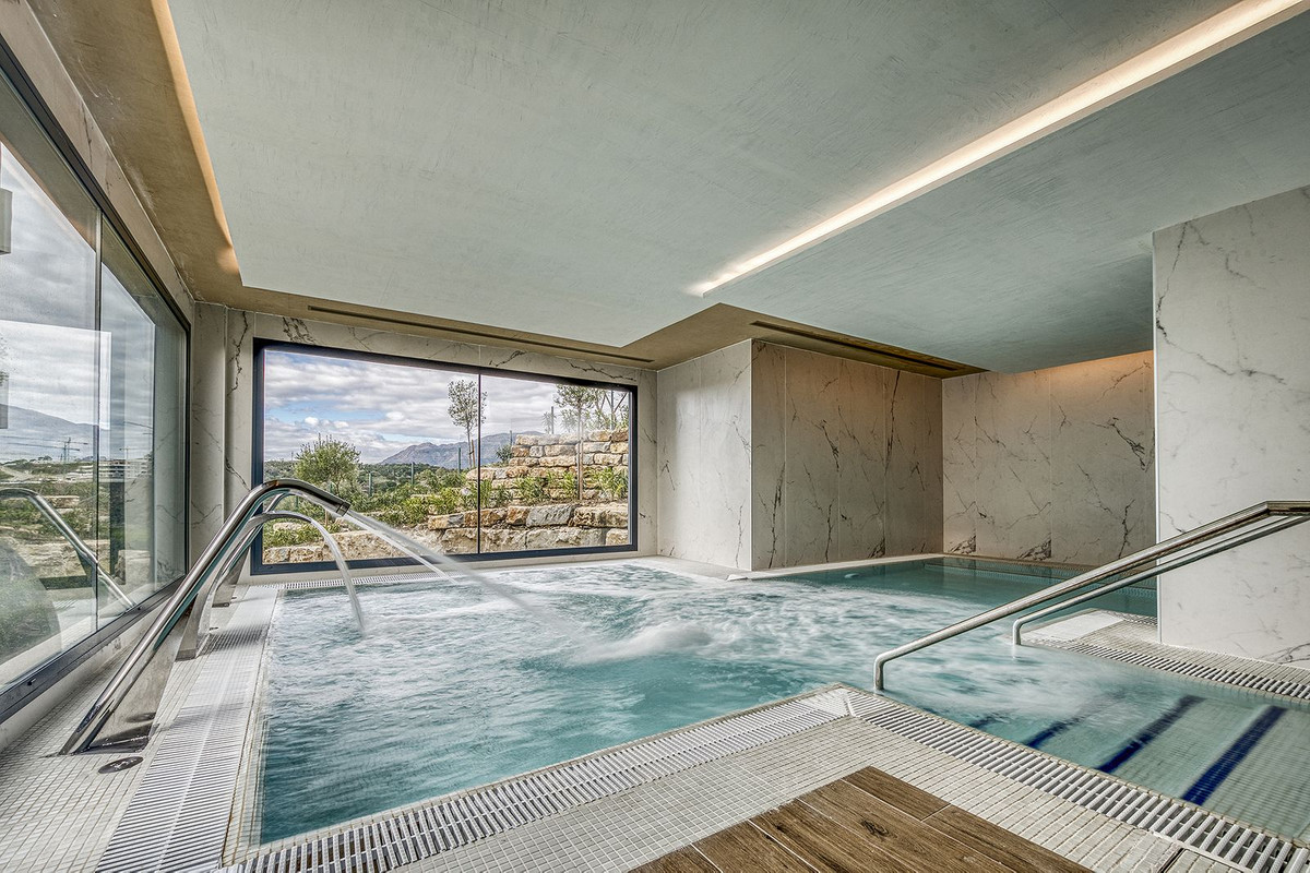 Setting: Suburban, Close To Schools, Urbanisation Orientation: South West Condition: Excellent Pool: Communal, Indoor, Heated Climate Control: Air Conditioning Views: Pool Features: Lift, Fitted Wardrobes, Private Terrace, Satellite TV, WiFi, Gym, Sauna, Double Glazing, Basement, Fiber Optic Furniture: Not Furnished, Optional Kitchen: Fully Fitted Garden: Communal Security: Gated Complex, Electric Blinds, Alarm System, 24 Hour Security Parking: Underground Utilities: Electricity Category: Contemporary