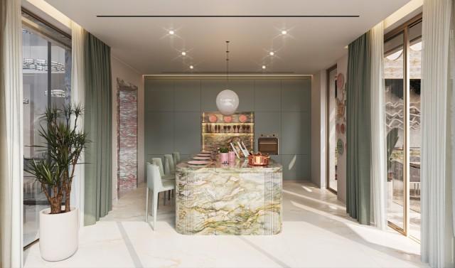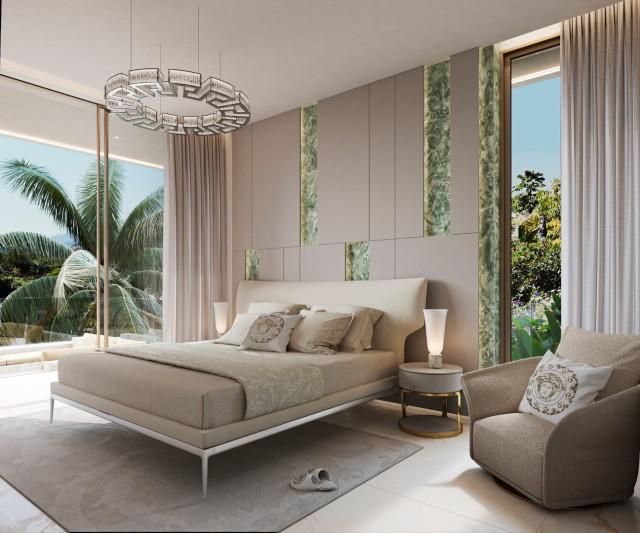 This exclusive collection of just eight ultra-luxury villas has been created in collaboration with Versace Home, delivering a rare fusion of haute couture design and contemporary residential architecture. Located in the prestigious residential enclave of Nueva Andalucía, within Marbella, these exceptional residences redefine branded luxury living on the Costa del Sol. Each villa is conceived as a fully immersive Versace Home lifestyle experience, where the House’s unmistakable identity is expressed through bespoke interiors, refined craftsmanship and iconic design elements. From premium Italian marbles and handcrafted mosaics to custom Versace Home furnishings and decorative finishes, every detail reflects the brand’s celebrated aesthetic language. Signature motifs such as the Medusa, Greca and Barocco patterns are subtly integrated throughout the living spaces, creating an atmosphere of unmistakable glamour, sophistication and cultural refinement. The result is a collection of residences that transcend traditional luxury real estate, offering a fashion-driven lifestyle concept rarely available in Europe. Set within a fully gated private community, each villa occupies an expansive plot of approximately 2,000 m² and is distributed over three levels, all enjoying panoramic sea views. The homes feature five generously proportioned bedrooms, each finished to the highest standards and enriched with bespoke Versace Home detailing. Designed to elevate both everyday living and entertaining, the villas offer an extraordinary lifestyle programme including: Private spa and wellness area Indoor and outdoor cinema rooms Indoor swimming pool Outdoor swimming pool Plunge pool and private jacuzzi Expansive terraces and outdoor lounge areas Every residence has been carefully planned to create seamless transitions between interior and exterior living spaces, allowing owners to fully enjoy Marbella’s year-round climate and spectacular coastal setting. Security and privacy are paramount. The community provides 24-hour controlled access, advanced surveillance systems and resident-only entry, offering peace of mind within one of the most desirable luxury neighbourhoods in southern Spain. The location places residents only minutes from the marina, beaches, fine dining and international lifestyle attractions of Puerto Banús, while remaining surrounded by championship golf courses and some of the most established residential estates on the Costa del Sol. Every element – from lighting design and textiles to architectural hardware and bespoke finishes – has been created or curated in collaboration with Versace Home to ensure complete visual consistency and unmistakable brand identity throughout each residence. These villas represent a rare opportunity to acquire a fully branded luxury home, where high fashion, architecture and lifestyle converge into one of the most exclusive residential offerings currently available in Marbella. Expected delivery: first quarter of 2028.