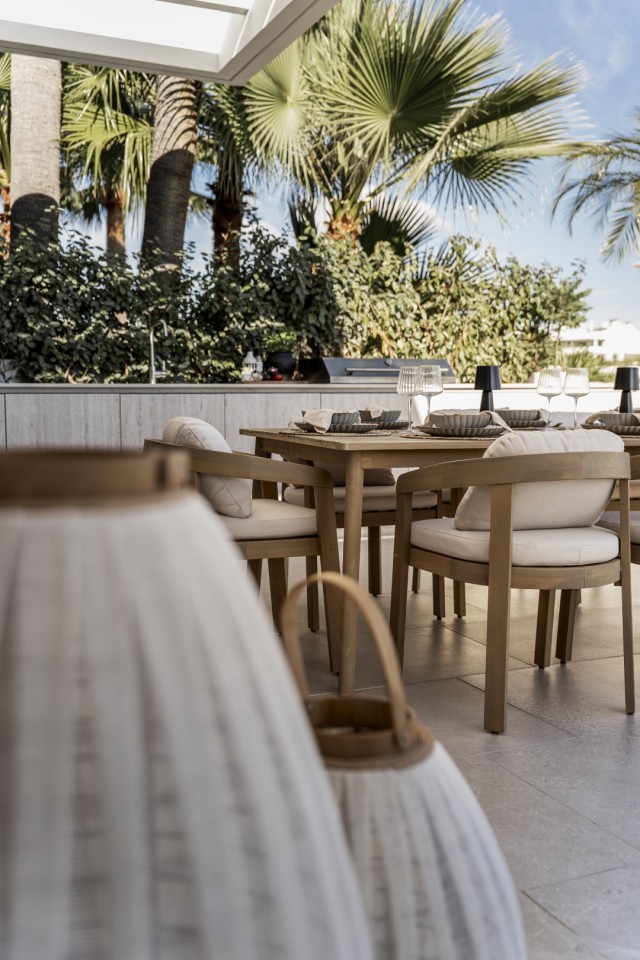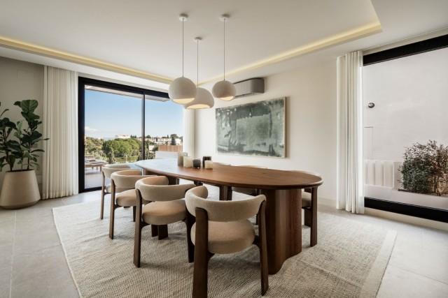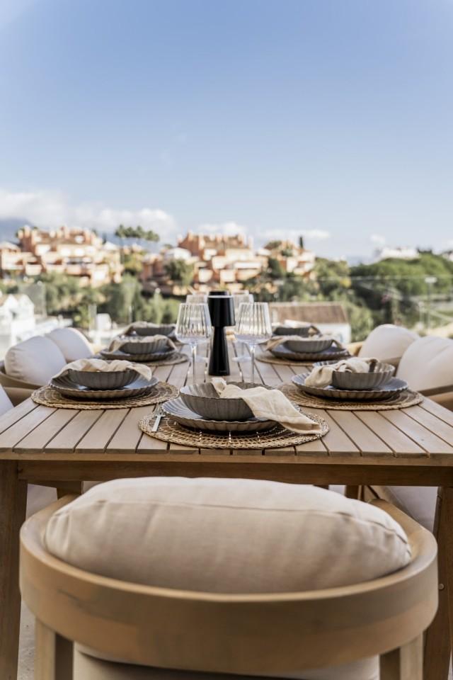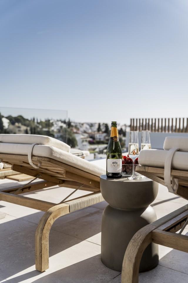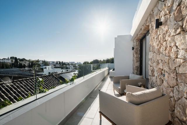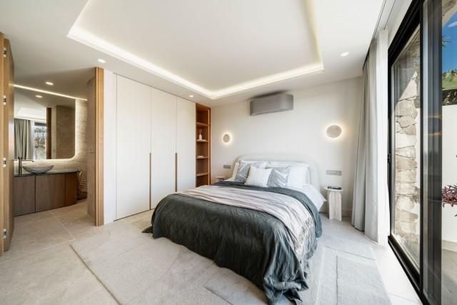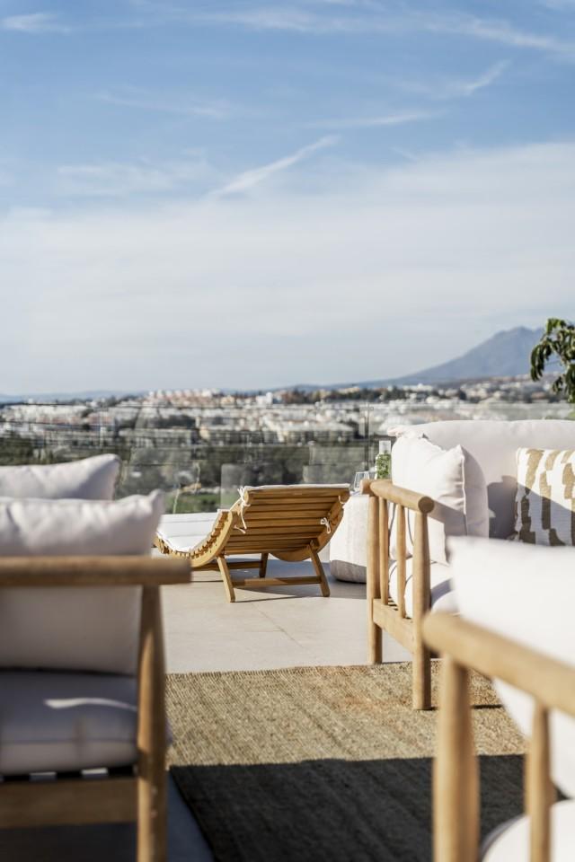 This fully renovated design-led luxury villa is set in one of the most elevated and scenic positions in Nueva Andalucía, offering breathtaking panoramic views that stretch from the iconic La Concha mountain to Gibraltar and the Mediterranean coastline. Positioned on a quite location, the property combines privacy, architectural refinement, and exceptional outlooks across the golf valley. Rebuilt to high specifications, the villa blends contemporary architecture with premium materials and timeless finishes. Its dual east and west orientation ensures abundant natural light throughout the day, enhancing the open and airy interior atmosphere. Distributed across three levels, the residence features five well-proportioned bedrooms and four stylish bathrooms, providing flexibility for families, guests, or investment use. The main living level is designed for seamless modern living, with an open-plan kitchen, lounge and dining area that flows directly onto a generous terrace. This outdoor space is ideal for entertaining, featuring an outdoor kitchen and a large private swimming pool with a swim-jet system, all set against uninterrupted panoramic views. A rooftop terrace elevates the lifestyle offering further, complete with a jacuzzi and 360-degree views. This space is perfectly suited for sunset gatherings, relaxation, or wellness moments while enjoying the surrounding landscape. The lower level includes a fully self-contained apartment with its own entrance, bathroom, lounge, and private terrace. This versatile space is ideal for guests, extended family, or as a potential rental unit, offering excellent income potential while maintaining privacy for the main residence. High-quality finishes are evident throughout, including porcelain flooring, custom wood cabinetry, and natural stone elements. Additional features include a modern alarm system and a private carport. Despite its peaceful and elevated setting, the villa remains exceptionally well connected. Shops, restaurants, beaches, international schools, golf courses, and lifestyle amenities are all within easy reach, while excellent road access provides fast connections to Marbella, Puerto Banús, Estepona, and Málaga Airport. This property represents a rare opportunity to acquire a fully reimagined luxury villa with panoramic views in one of Nueva Andalucía’s most desirable residential locations - ideal as a primary residence, holiday home, or high-performing investment.