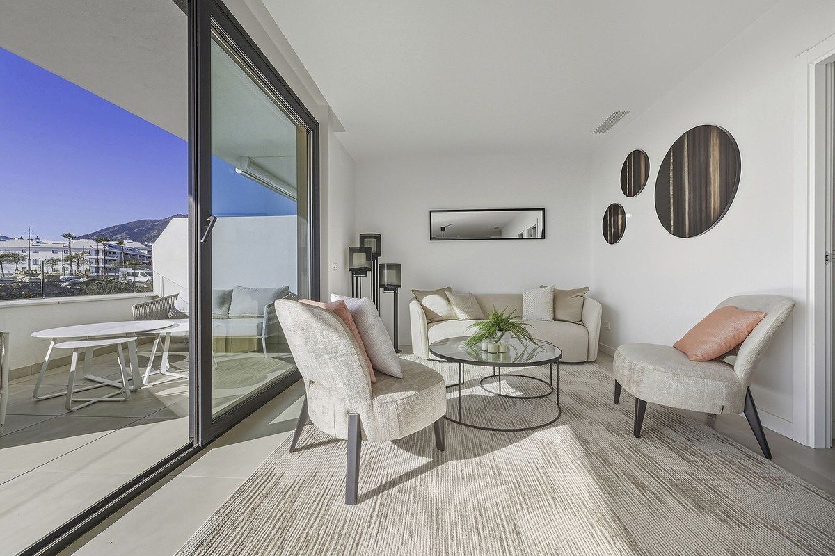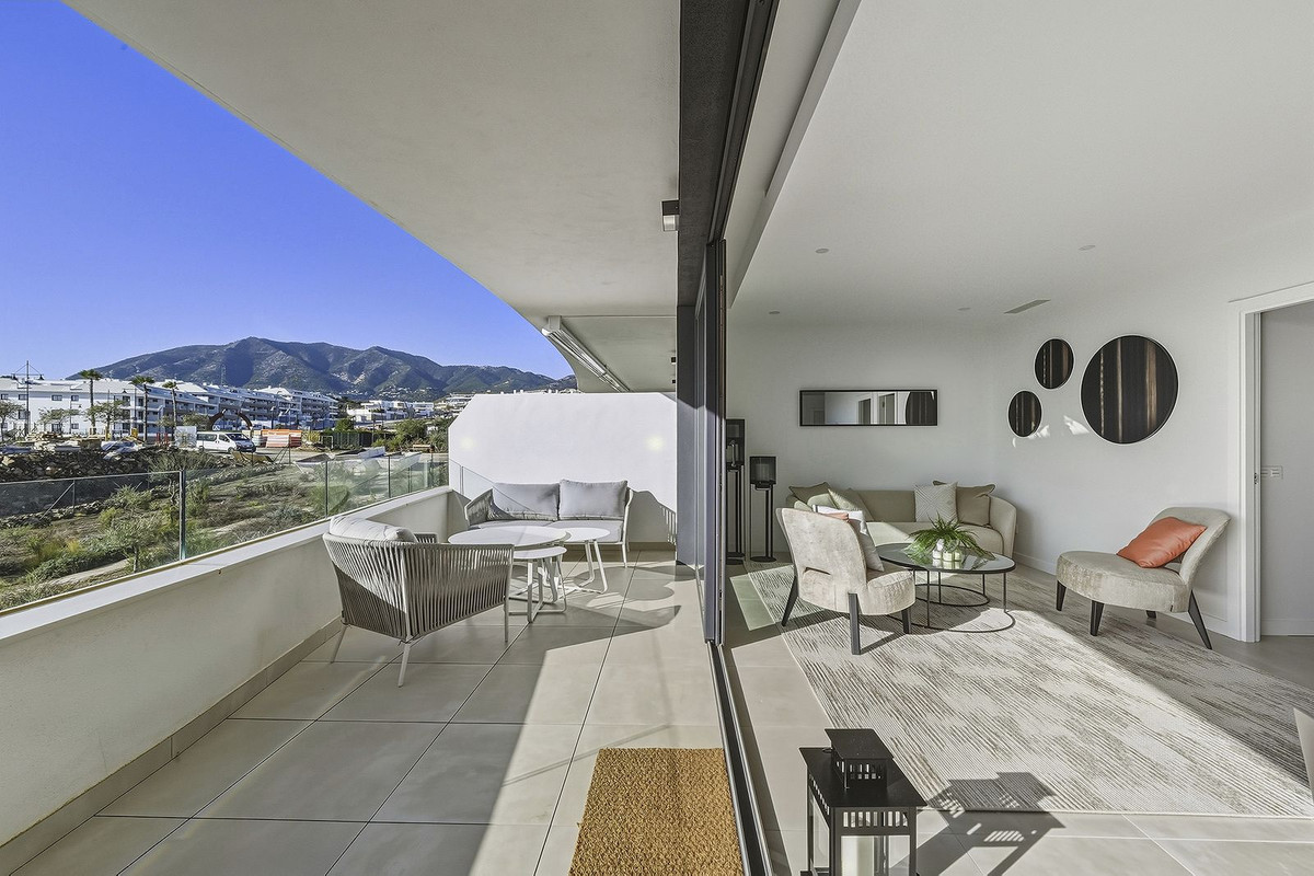 Contemporary luxury apartment with sea and mountain views in Higuerón West This elegant mid-floor apartment is located within the prestigious Higuerón West 217 resort, one of the most exclusive residential developments on the Costa del Sol. The property enjoys a south-west orientation, offering abundant natural light and stunning panoramic views of the sea and surrounding mountains. The apartment offers 67 m² built and a 19 m² covered terrace, ideal for outdoor dining and enjoying Mediterranean sunsets. The layout includes 2 bedrooms and 1 bathroom, finished to a modern and functional standard. The property is in excellent condition, part of a newly built development, and is sold fully furnished, including a high-end luxury furniture package valued at €41,500, making it ready to move in or rent immediately. Features include a fully fitted kitchen, air conditioning, double glazing, fibre optic internet, and high construction quality throughout. The building benefits from a lift and disabled access. Residents enjoy a secure gated community with 24-hour security, beautifully maintained communal gardens, swimming pool, gym, sauna, padel and tennis courts, and an on-site restaurant. The property also includes two underground parking spaces and a storage room. Ideally located close to the beach, marina, shops and public transport. Málaga Airport, Málaga city and Marbella are all within a short drive, with numerous top-class golf courses nearby. An excellent opportunity as a permanent residence, holiday home or high-quality investment within a luxury resort setting on the Costa del Sol.