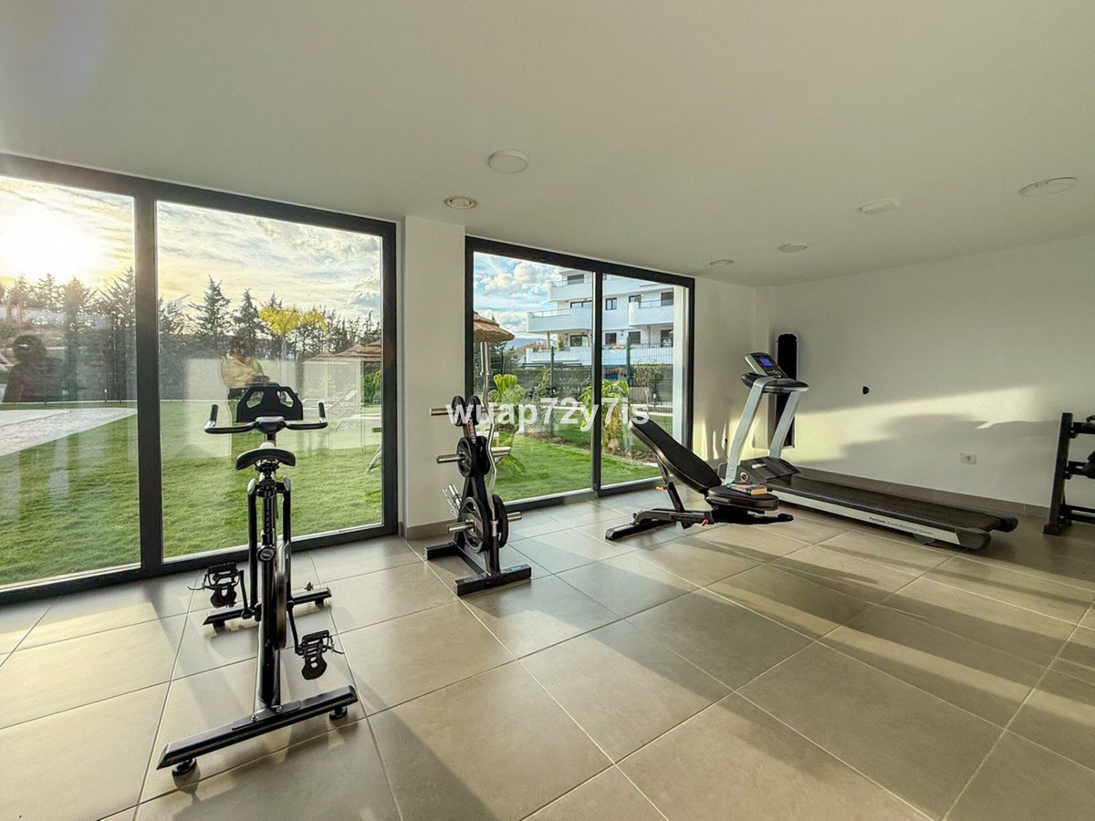 Spacious Two-Bedroom Ground Floor Apartment – Aranya Estepona, Selwo Discover this beautifully designed two-bedroom ground floor apartment in the prestigious Aranya Estepona, located in the tranquil and sought-after area of Selwo. As you enter, the kitchen is located on the right-hand side — a spacious, fully equipped area with a stunning modern design. The kitchen also features a stylish breakfast bar with bar stools, perfect for enjoying a glass of wine with friends. Moving forward, you’ll find a bright and expansive living room with comfortable sofas, ideal for relaxing or entertaining guests. Turning to the right from the living room, there is a guest bedroom with its own bathroom, and further along, the master bedroom with a private en-suite bathroom. A major advantage of this apartment is that all rooms feature floor-to-ceiling windows with direct access to the terrace, filling the interiors with natural light and creating a wonderful sense of space. The terrace is covered and beautifully arranged, featuring a relaxing lounge area with sofas and a dining space where you can enjoy breakfast, lunch, or dinner outdoors. Beyond the terrace, there is a private garden with a grassy lawn — perfect for placing sun loungers and enjoying the sunshine. Around the garden, decorative plants and shrubs create a sense of privacy and visual harmony. You can also plant flowers to make the space even more personal and inviting. Location & Nearby Amenities Aranya Estepona enjoys an excellent location with easy access to a variety of amenities: • Golf Courses: Within 5–10 minutes by car, including some of the Costa del Sol’s most prestigious courses. • Schools: Top international and local schools just 5–15 minutes away. • Restaurants: A wide selection of dining options within 5 minutes. • Tennis & Padel Clubs: Only 5–10 minutes away. Distances to Key Destinations: • Estepona Historic Center: Approximately 10 minutes by car. • Marbella Historic Center: Around 25 minutes by car. • Puerto Banús: Luxury shopping, fine dining, and vibrant nightlife — about 15 minutes by car. This spacious two-bedroom ground floor apartment in Aranya Estepona perfectly combines elegance, comfort, and practicality. With its bright interiors, modern design, and private terrace with garden, it is the ideal place to enjoy the Mediterranean lifestyle on the Costa del Sol.