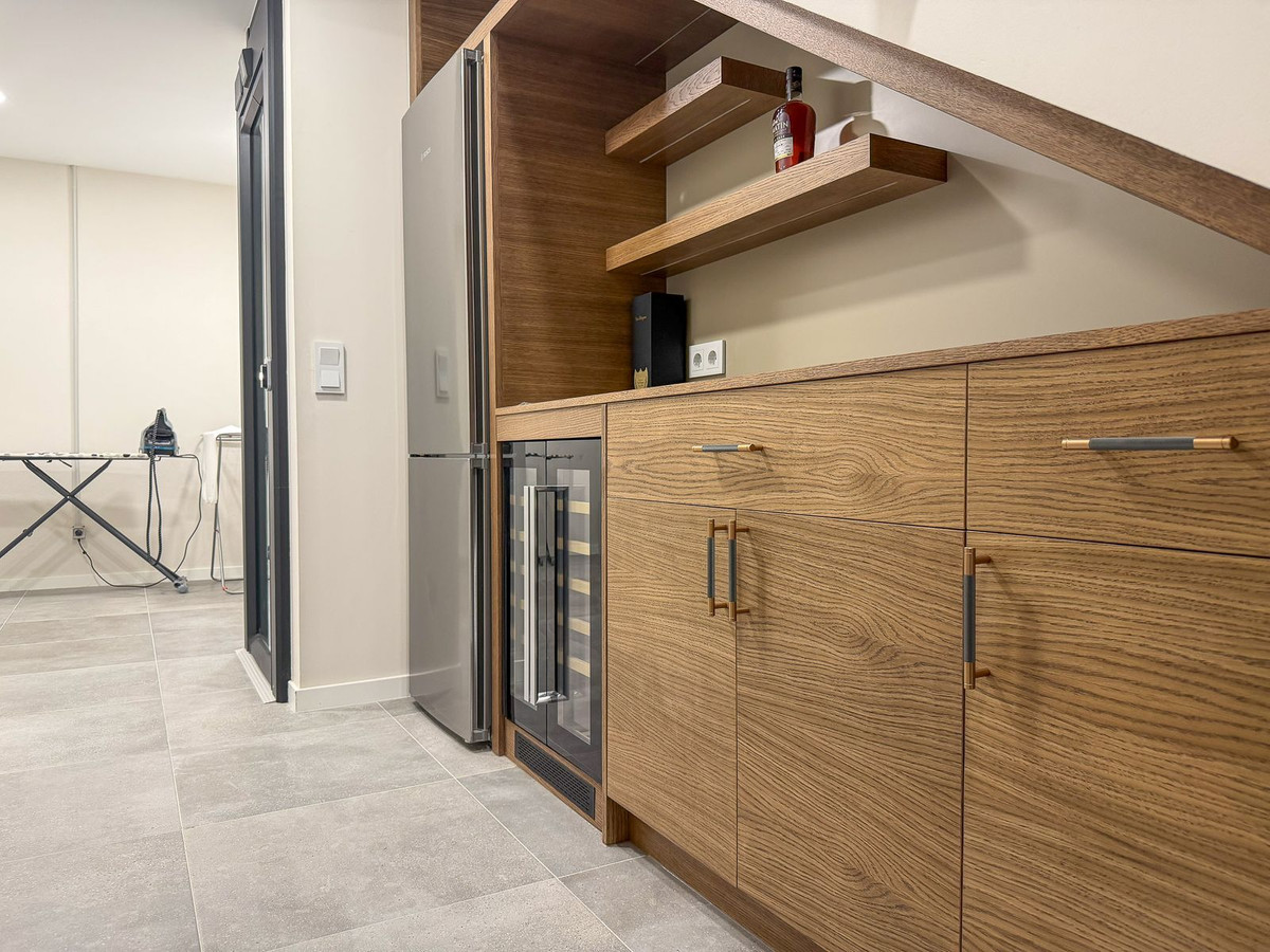 Contemporary Luxury Townhouse in La Cala de Mijas Perfectly located in the charming coastal village of La Cala de Mijas, this elegant townhouse combines modern design, high-quality upgrades, and exceptional convenience. With the beach, restaurants, cafés, and everyday amenities all within walking distance, the property offers a rare opportunity to enjoy refined living in one of the most sought-after locations on the Costa del Sol. The home is distributed over three floors and offers three bedrooms and three bathrooms, with generous outdoor spaces that create a natural extension of the living areas. Direct access from the private parking space provides both privacy and convenience. A private lift connects all three floors of the home, a premium feature rarely found in townhouses, ensuring effortless access throughout the property. The main living area is bright and welcoming, opening onto a spacious west-facing terrace. Large glass doors allow natural light to fill the interior while creating a natural flow between the living room and the outdoor space. The terrace offers ample room for both lounge seating and outdoor dining, making it an ideal setting for relaxed evenings and entertaining. On the upper floor you will find three bedrooms and two bathrooms. The master bedroom includes an ensuite bathroom and access to a private terrace, offering a quiet space to start or end the day. The property has been upgraded with several premium options from the developer, including high-quality tiling and integrated appliances. In addition, the original kitchen has been replaced with a high-end contemporary kitchen that enhances both functionality and design. A bespoke wine bar has also been integrated, creating an elegant feature ideal for entertaining and relaxed evenings at home. A separate laundry room further adds to the practicality of the home, providing additional space for storage and organisation. Residents of the community also benefit from a range of high-quality shared facilities, including a swimming pool, gym, sauna, steam bath, and a stylish residents’ lounge with a pool table, creating additional spaces for relaxation and socialising. Another significant advantage of the property is that it holds an active tourist rental license, offering excellent flexibility for owners who wish to generate rental income while not using the property themselves. Every detail has been carefully considered, resulting in a home that combines modern elegance with everyday comfort. A contemporary home in an excellent location, offering comfort, functionality, and easy access to everything La Cala de Mijas has to offer. Here, you truly don’t have to compromise between convenience, quality, and lifestyle.
