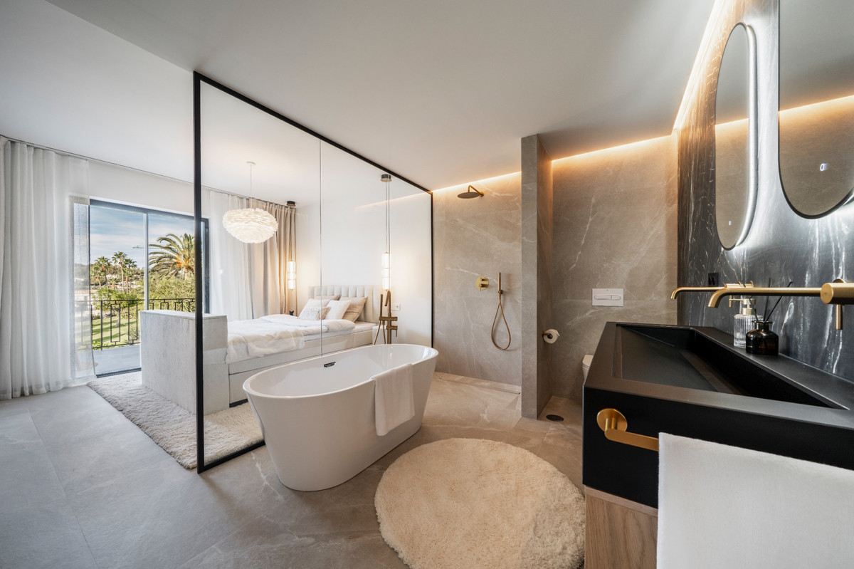 | Setting: Close To Golf, Close To Port, Close To Shops, Close To Sea, Close To Town, Close To Schools Orientation: South West Condition: New Construction Pool: Communal Climate Control: Air Conditioning, Central Heating, U/F/H Bathrooms Views: Sea, Mountain, Golf, Garden, Pool Features: Covered Terrace, Fitted Wardrobes, Near Transport, Private Terrace, WiFi, Ensuite Bathroom, Barbeque, Double Glazing, Fiber Optic Furniture: Fully Furnished Garden: Private Security: Electric Blinds, Alarm System Parking: Communal Category: Luxury |