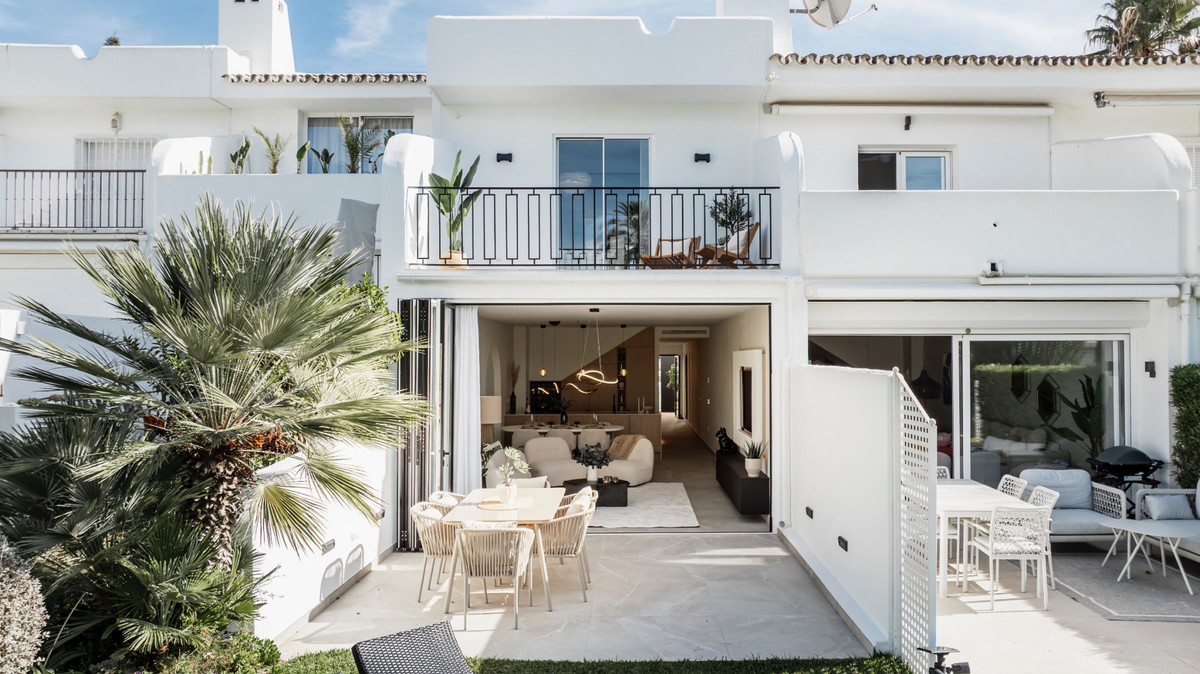 Please note: For us to provide You with our best possible service, please leave your email and phone number when sending your enquiry. Thank you Beautifully renovated four-bedroom townhouse, where light, space, and modern comfort come together seamlessly. Located in the highly sought-after and family-friendly community of La Rinconada in Nueva Andalucía, this home perfectly embodies Marbella’s relaxed lifestyle. Surrounded by the lush greenery of the renowned Golf Valley, the property sits within a charming, gated Andalusian-style complex. The community features mature landscaped gardens with tall palm trees and a peaceful communal swimming pool, creating a serene and private atmosphere. Recently refurbished throughout, Casa Preciosa combines high-quality materials with a smart and elegant design distributed over two bright levels. The ground floor offers an open-plan layout with a modern kitchen and a welcoming living area that opens onto a sun-drenched terrace, ideal for al fresco dining with views over the garden and pool, and with direct access to the communal green areas. This level also includes two guest bedrooms sharing a full bathroom, along with a separate guest toilet and a discreet utility room for added convenience. Upstairs, the master bedroom enjoys its own private terrace overlooking the gardens, pool, and the beautiful mountain views of the Golf Valley. An additional guest bedroom with an en-suite bathroom completes the layout, ensuring comfort and privacy for all. Thanks to its excellent orientation, the house benefits from abundant afternoon sunlight, making it perfect for those who appreciate indoor-outdoor living. The property is within walking distance of top restaurants, a supermarket, Aloha Tennis & Paddle Club, and Aloha Golf. The prestigious golf courses Las Brisas, Magna, and Los Naranjos, as well as Aloha College, are just minutes away. Casa Preciosa offers a rare opportunity to acquire a beautifully designed home in one of Marbella’s most desirable areas—a perfect blend of style, comfort, and location.. LET US MOVE YOU!