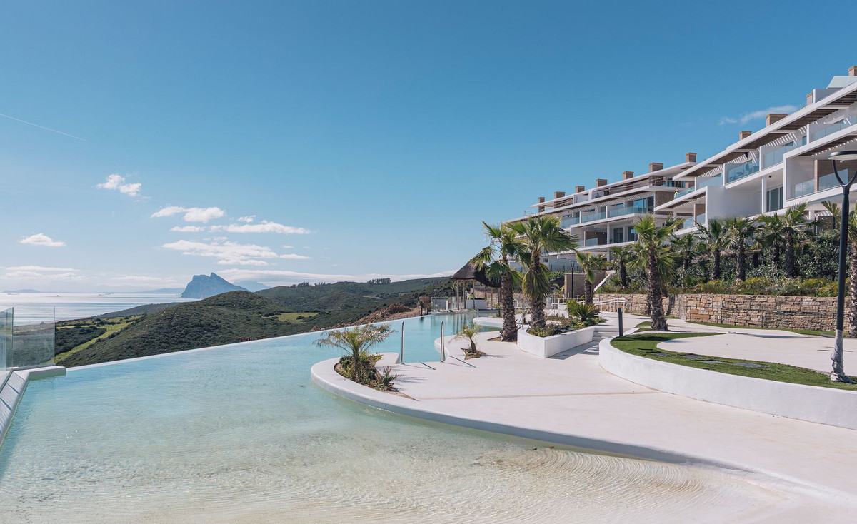 Discover this 2-Bedroom Apartment with Panoramic Sea Views – Excellent Investment Opportunity Located in the sought-after Infinity Alcaidesa Residential, this stunning 2-bedroom apartment in Jazmin Block offers breathtaking panoramic sea views and is due for completion in just a few months. Situated on the second floor, the property features: 85 m² built area 18 m² private terrace with sea views 1 parking space 1 storeroom About Infinity Alcaidesa Stunning residential offering a selection of apartments, duplexes, and penthouses with panoramic views, top specs, large terraces, and superb on-site facilities. Nestled on the highest part of La Alcaidesa, it offers impressive views of the Mediterranean Sea, North Africa, and Gibraltar. The contemporary apartments feature a sleek modern design with bright, airy open interiors. They are sitting on a gentle south-facing hillside with spectacular 180º views of the lighthouse, the Mediterranean Sea, Africa and Gibraltar. The interiors are ample and bright, offering open-plan living areas that enhance the panoramic scenery and the natural light. Floor-to-ceiling windows provide access to the generous outdoor space and boost the feeling of immensity that the landscape gives. These homes are finished to high-quality standards, offering fully furnished kitchens with Silestone worktops and top-brand appliances, luxury bathrooms with Grohe taps and underfloor heating. Some features are large porcelain flooring, air conditioning hot and cold, and an aerothermal system. All the homes include parking places and storerooms. The communal areas offer a unique resort-like lifestyle still never seen in La Alcaidesa, having the golf, the sports and the relaxation as a core. It boasts a fabulous beach club, an infinity pool with dramatic views of the Mediterránean Sea, children área, mini-golf, an outdoor gymnasium, and a fantastic pool restaurant surrounded by tropical gardens. About La Alcaidesa This stylish residential enjoys a prime location on the highest point of La Alcaidesa, two golf courses at your doorstep, and the best views in the area. Not more than 10 minutes away is Sotogrande, with its five top-class golf courses, polo fields, and Marina. Gibraltar’s airport is 15 minutes by car, and Malaga’s international airport is at easy reach, under 1.15 hrs by the A7. La Alcaidesa has been flowering with a stunning collection of modern luxury developments and amenities meeting most homebuyers’ requirements seeking an exclusive lifestyle or just an excellent investment opportunity in the last few years.