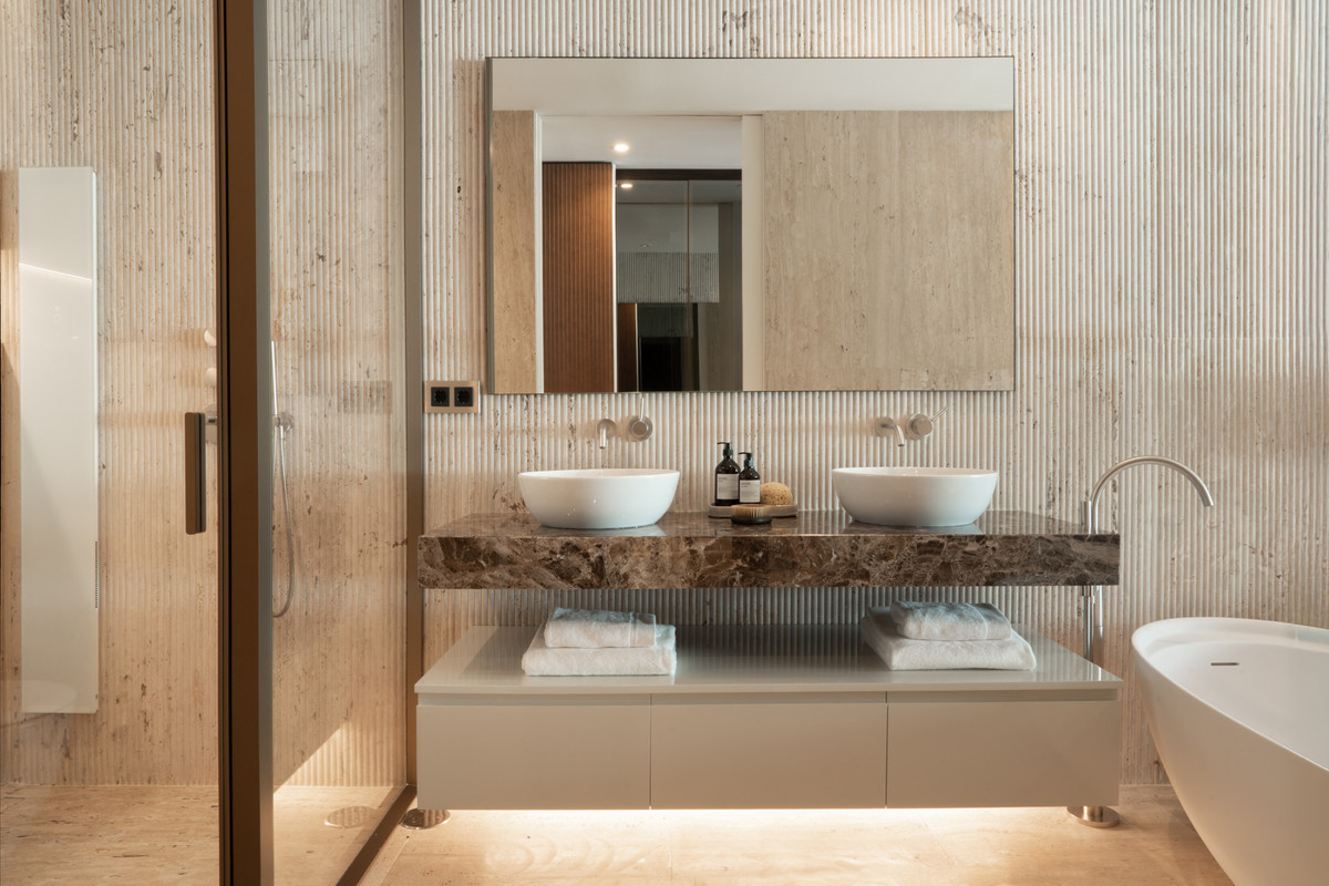 This exquisite 4-bedroom duplex in Epic Marbella by Fendi offers the ultimate in luxury living on Marbella’s prestigious Golden Mile. With 337.94 m² of beautifully designed interiors and a 105.38 m² private terrace, this brand-new residence is the perfect blend of elegance, comfort, and convenience. The property features four spacious bedrooms, each with its own en-suite bathroom, plus an additional guest toilet. Positioned west-facing, it enjoys breathtaking sunset views over the communal swimming pool and landscaped gardens. Residents benefit from a private garage and storage room within a secure gated community offering 24-hour security and concierge service. Designed for ultimate comfort, the duplex boasts a fully fitted kitchen with high-end appliances, underfloor heating throughout, and air conditioning. The private and covered terraces offer stunning garden and pool views, while additional luxuries include a jacuzzi, gym, spa, games room, and tennis/paddle courts. The basement provides extra space for customization, ensuring every need is met. Located just minutes from the beach, this home is also close to top golf courses, fine dining, high-end shopping, and Marbella’s vibrant nightlife. With easy access to international schools, Marbella town, and Puerto Banús, this exceptional property is ideal for those seeking an exclusive lifestyle in one of the most sought-after locations on the Costa del Sol. Contact us today to schedule a private viewing.