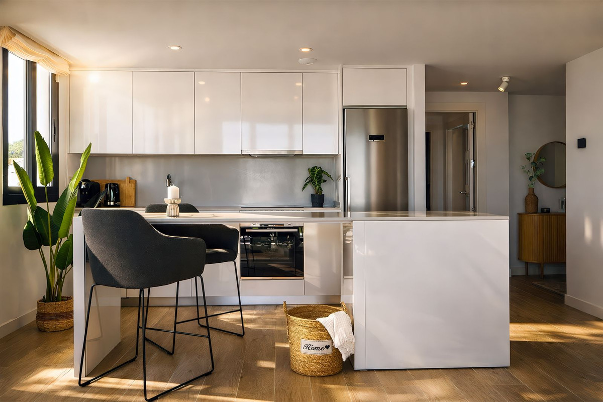 GROUND FLOOR APARTMENT | ONE 80 SUITES · ESTEPONA Panoramic Sea Views · Private Garden · South-Facing A rare find on the Costa del Sol - a ground floor apartment that genuinely delivers on its promise of views, light, and outdoor living from the moment you step inside. Situated in the boutique development of One 80 Suites, this south-facing residence was designed around its landscape. Floor-to-ceiling windows frame an uninterrupted panorama of the Mediterranean from the living area, while the seamless connection between interior and exterior makes the boundary between the two almost disappear entirely. The space offers 74 m² of thoughtfully finished interior, opening directly onto an impressive 52 m² terrace and an exclusive 42 m² private garden — a combination that is increasingly difficult to find at this price point on the Costa del Sol. 2 well-proportioned bedrooms, 2 modern bathrooms, and a contemporary open-plan kitchen and living area finished to an excellent standard throughout. South orientation guarantees natural light all day, every day. The development offers residents a pool, fitness centre, underground parking, EV charging, and storage - all within a fully gated and secured community. Perfectly positioned between Estepona's beach promenade and the glamour of Puerto Banús and Marbella, both reachable within 15 minutes. Málaga and Gibraltar airports are equally accessible.