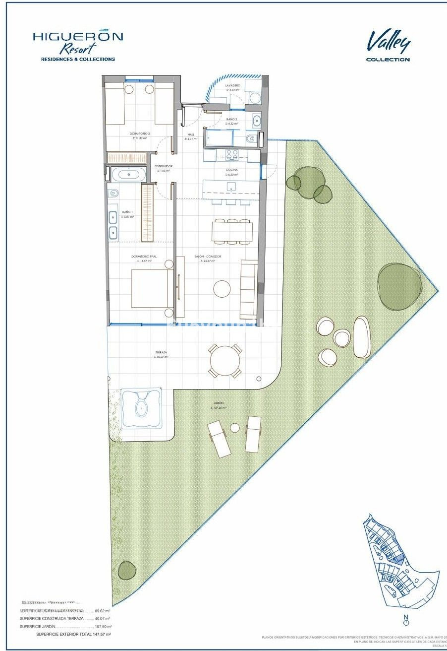 Discover this elegant ground floor resale apartment located in the prestigious Valley Collection, within the renowned Reserva del Higuerón. A property that perfectly blends contemporary design, comfort, and exceptional outdoor living. The apartment features 2 bedrooms and 2 bathrooms, along with a bright living area and a modern open-plan kitchen, designed to maximize natural light and create a seamless connection with the outdoor spaces. It also includes a home automation system, offering convenience and smart control throughout the property. With a total of 237 m² built, the property is distributed into 89 m² of interior space, a 40 m² terrace, and an impressive 107 m² private garden with a jacuzzi—ideal for enjoying the Mediterranean lifestyle all year round, whether relaxing or entertaining. Set within a well-maintained community, residents can enjoy beautiful landscaped gardens and a communal swimming pool, all in a modern and peaceful environment. The property also includes underground parking and a storage room in the price, adding extra comfort and practicality. An ideal choice as a permanent residence, holiday home, or investment in one of the most sought-after areas of the Costa del Sol.