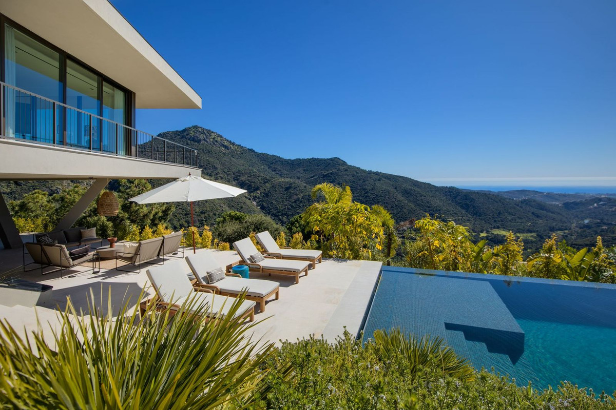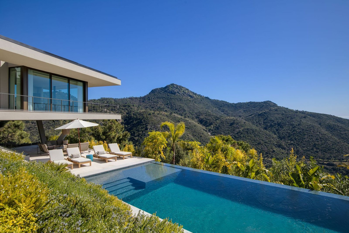 Contemporary Luxury in Harmony with Nature Perched above the breathtaking Monte Mayor Valley, is a bespoke architectural statement that seamlessly blends cutting-edge design, energy efficiency, and a profound connection to its natural surroundings. Its distinctive boomerang-shaped layout, thoughtfully arranged on a single level, has been crafted to maximise natural light and sweeping views of the sea and mountains, while ensuring complete privacy and a constant dialogue with the landscape. An elegant summer kitchen, infinity pool, and expansive terraces extend the interior living spaces outdoors, creating a refined and fluid lifestyle experience. The property is composed of a main residence featuring three spacious en-suite bedrooms and a spectacular open-plan living area where the lounge, dining room, and kitchen coexist in effortless harmony, ideal for both sophisticated entertaining and relaxed family living. Independently positioned, the guest house offers its own living room, fully equipped kitchen, and two additional en-suite bedrooms, providing autonomy, comfort, and privacy for visitors. Designed with a philosophy of responsible luxury, the home incorporates an advanced aerothermal system, underfloor heating and high-efficiency climate control, complemented by solar panels, green roofs, and drought-tolerant landscaping. A dedicated electric vehicle charging station further reflects its alignment with a sustainable and forward-thinking lifestyle. Premium natural materials, top-tier specifications, and a private gym complete a residence where wellbeing, innovation, and environmental sensitivity coexist in perfect balance. Casa Miyabi is more than a villa, it is a lifestyle statement: exclusivity, architectural innovation, and ecological awareness in one of Southern Europe’s most privileged enclaves. For further information or to arrange a private viewing, please contact us, we would be delighted to assist you personally.